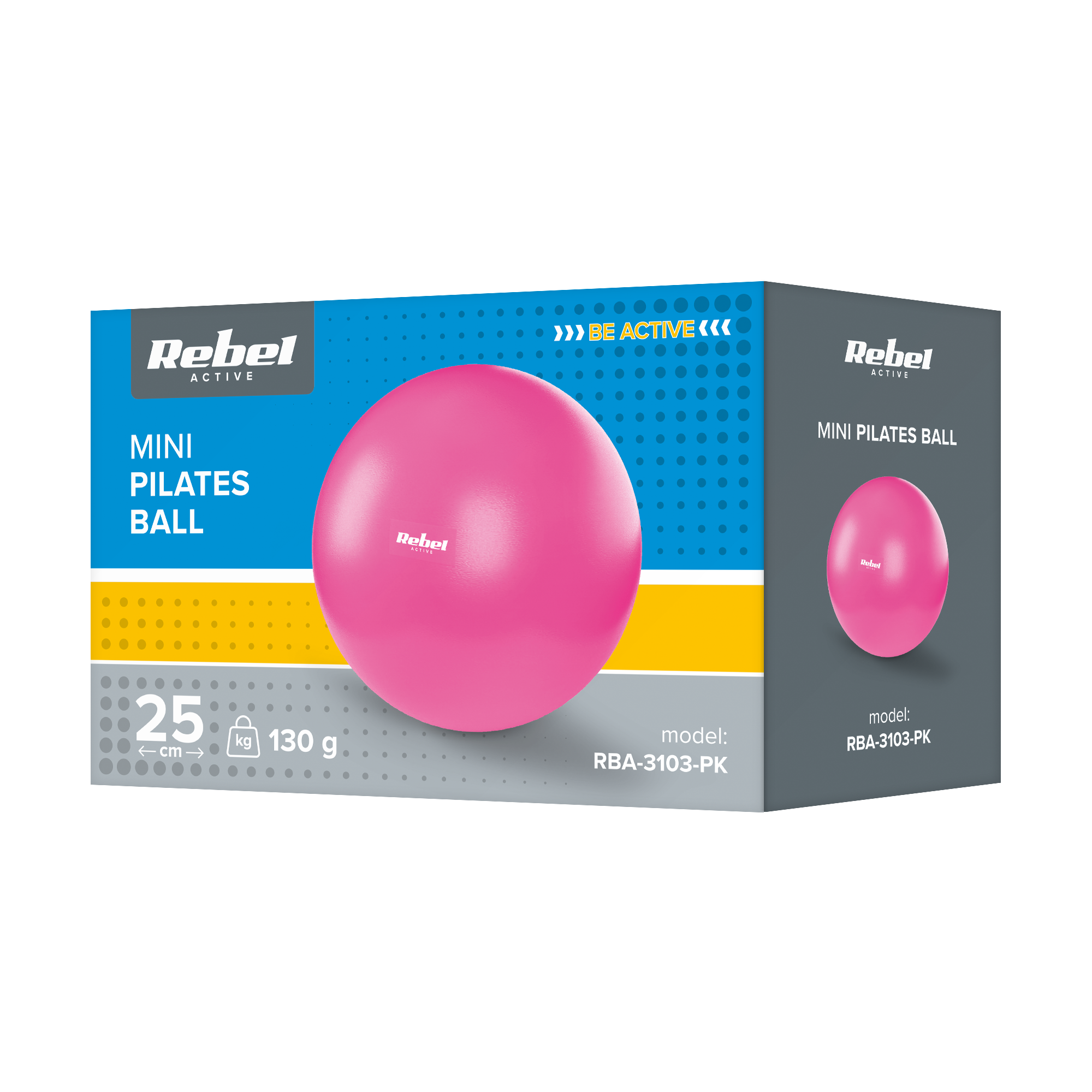 Mini sporto kamuolys pilatams reabilitacijos 25cm, rožinė, REBEL ACTIVE