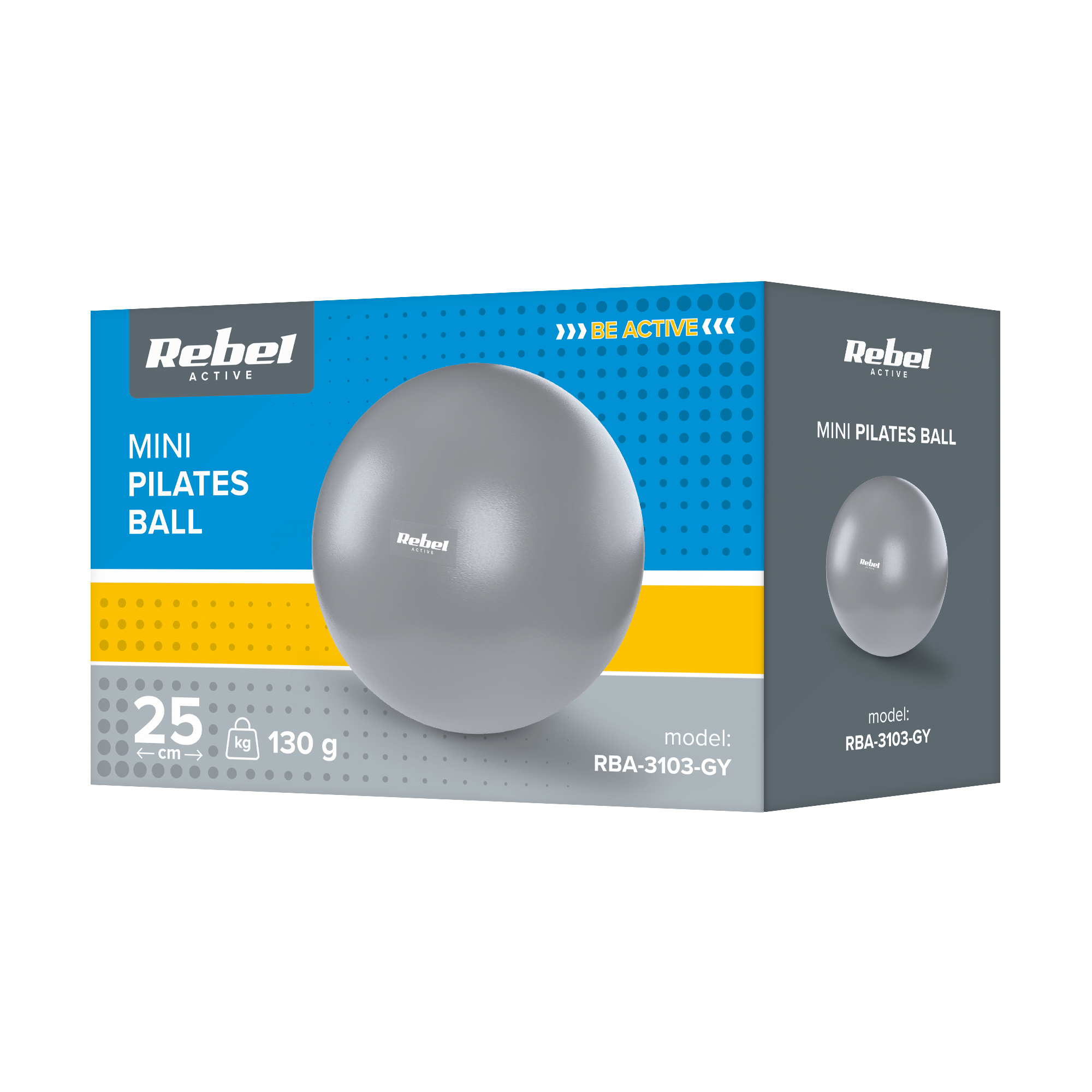 Mini sporto kamuolys pilatams reabilitacijos 25cm, pilkos spalvos, REBEL ACTIVE