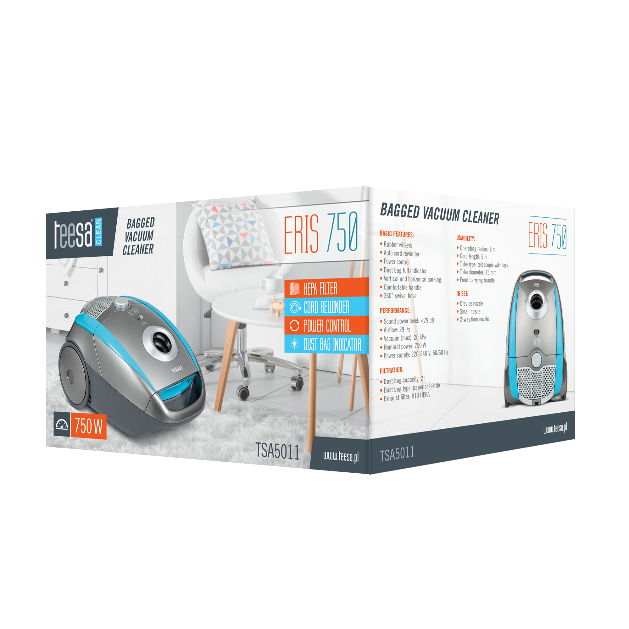 Odkurzacz workowy TEESA ERIS 750