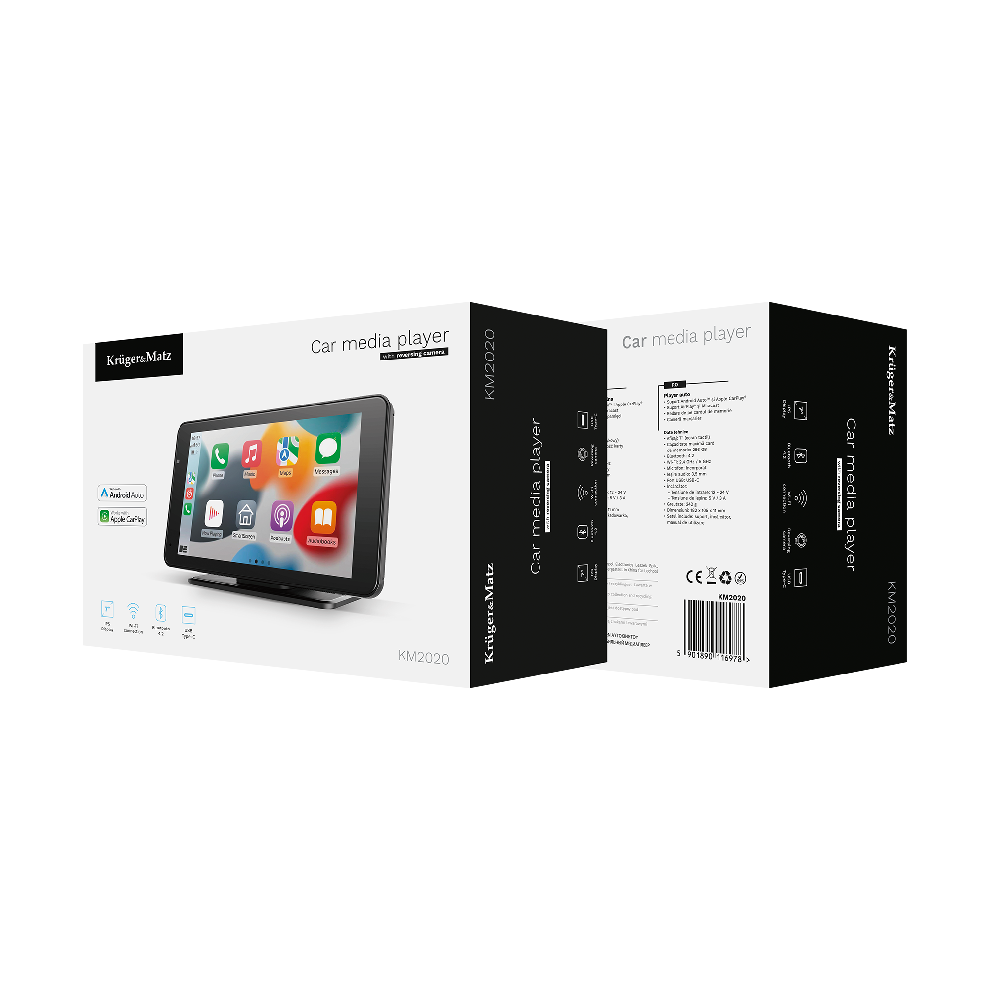 7 & quot multimedijos stotis; Android Auto Apple Carplay su Kruger & amp reverse kamera; Mtz