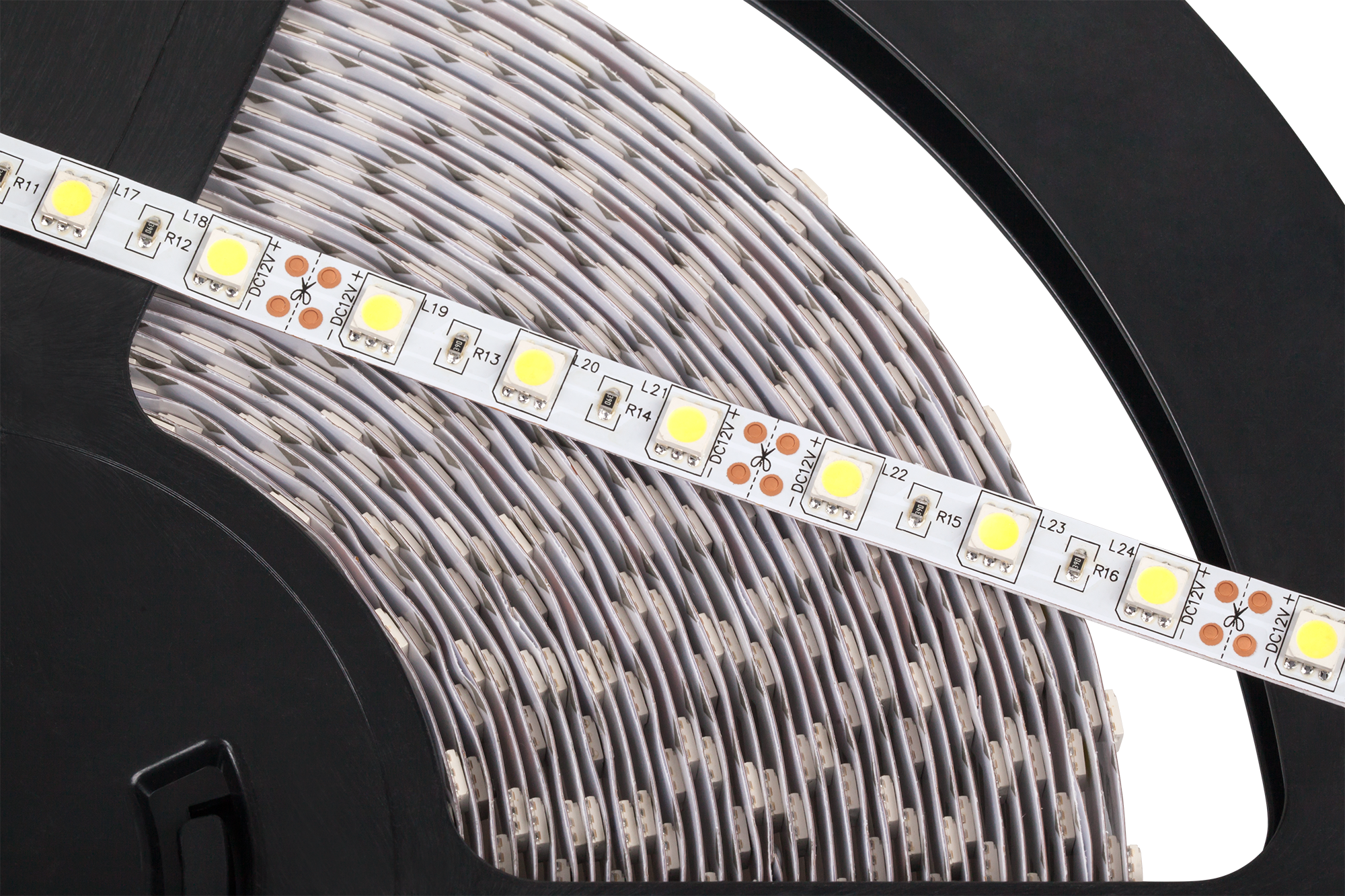LED kordas ant ritės -25m Skaičius ir nacionaliniai LED: 60x50 SMD / m Apsaugos lygis: IP20 (vidaus naudojimui)