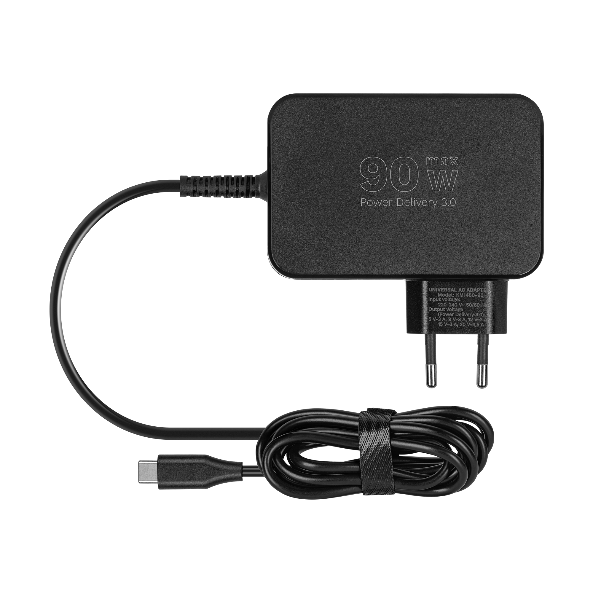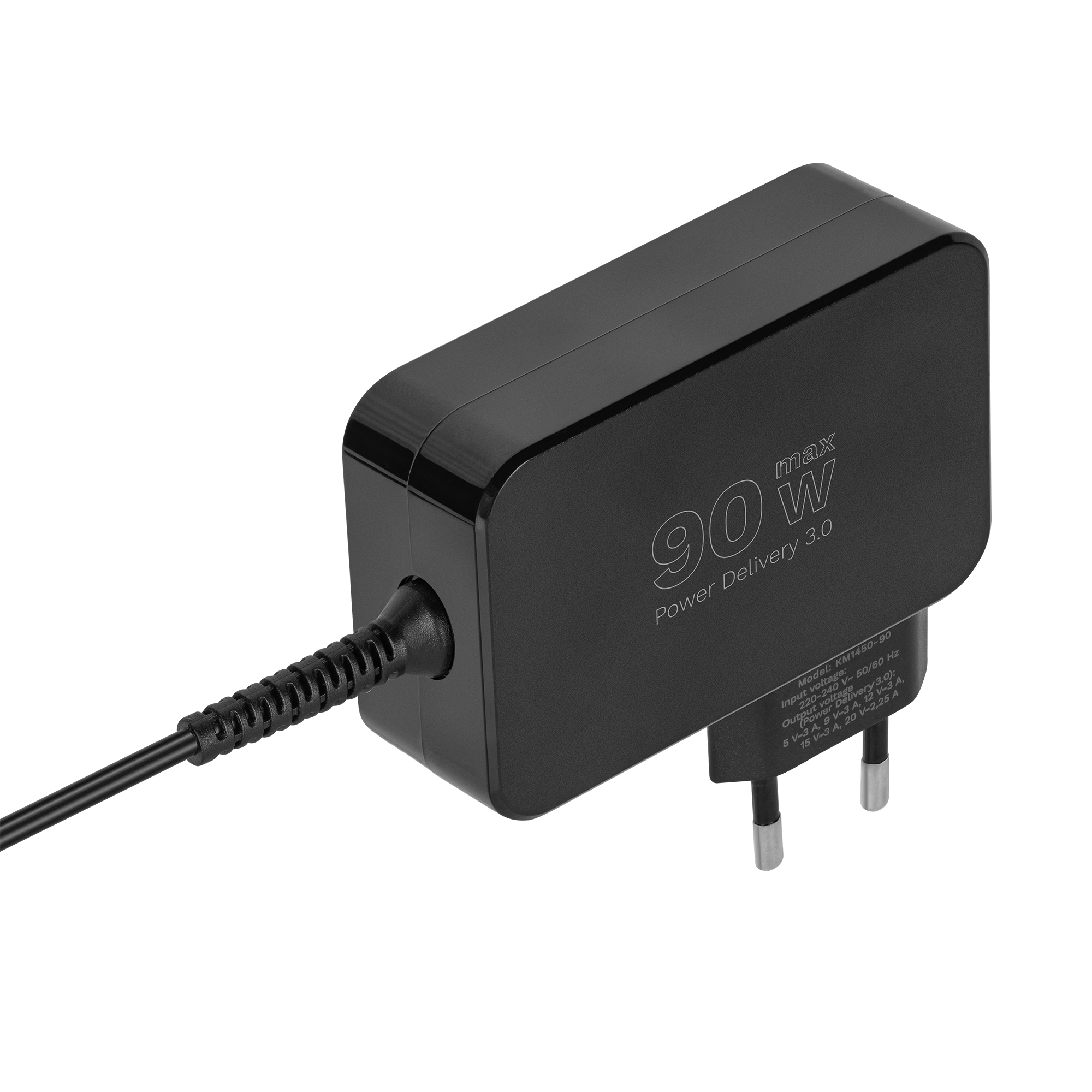 Jungtis: USB-C Power: 90 W Įėjimo įtampa: 220-240 V ~; 50 / 60 Hz Išėjimo įtampa: Power Delivery 3.0: 5 V / 3 A, 9 V / 3 A, 12 V / 3 A, 15 V / 3 A, 20 V / 4.5 A Protections: nuo perkrovos, viršįtampio ir perkaitimo Kabelio ilgis: 180 cm