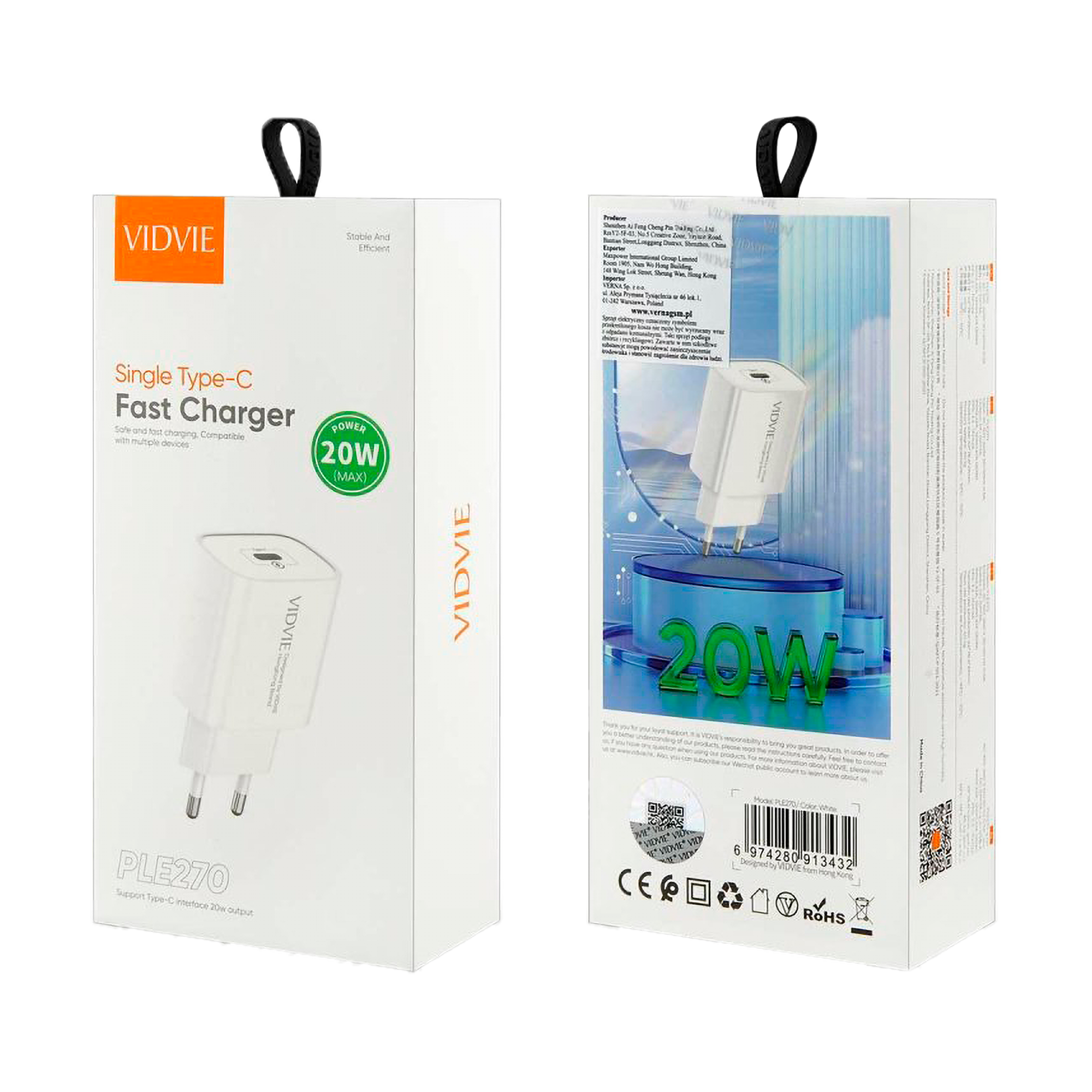 Wyjście: Power Delivery: 5V=3A, 9V=2.22A, 12V=1.67A (20W)