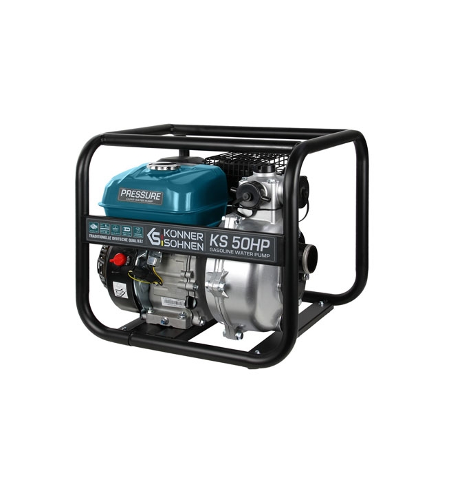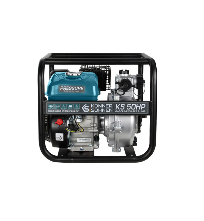 Könner & Söhnen KS 50HP aukšto slėgio siurblys skirtas darbams, kuriems reikia stiprių vandens čiurkšlių, pavyzdžiui, vandens bokštuose ar žemės ūkyje. Dažnai dar vadinami gaisriniais siurbliais, jie gali perkelti vandenį iki 50 metrų. Užvedę variklį, leiskite siurbliui veikti apie 30 sekundžių, tada sustabdykite variklį ir įpilkite į siurblį daugiau vandens, kad padidintumėte jo efektyvumą ir tęstumėte darbą.
