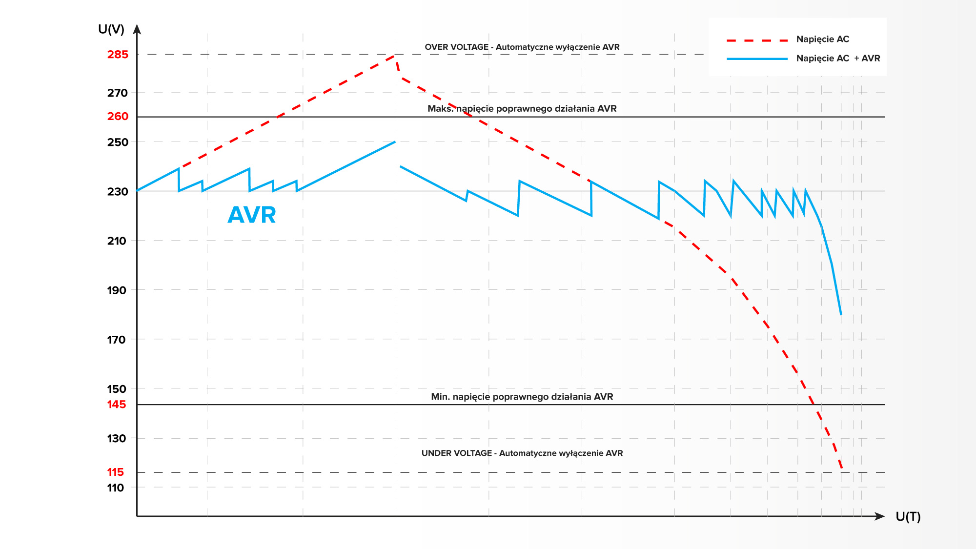 Wejście: Zakres napięcia 150-270 VAC