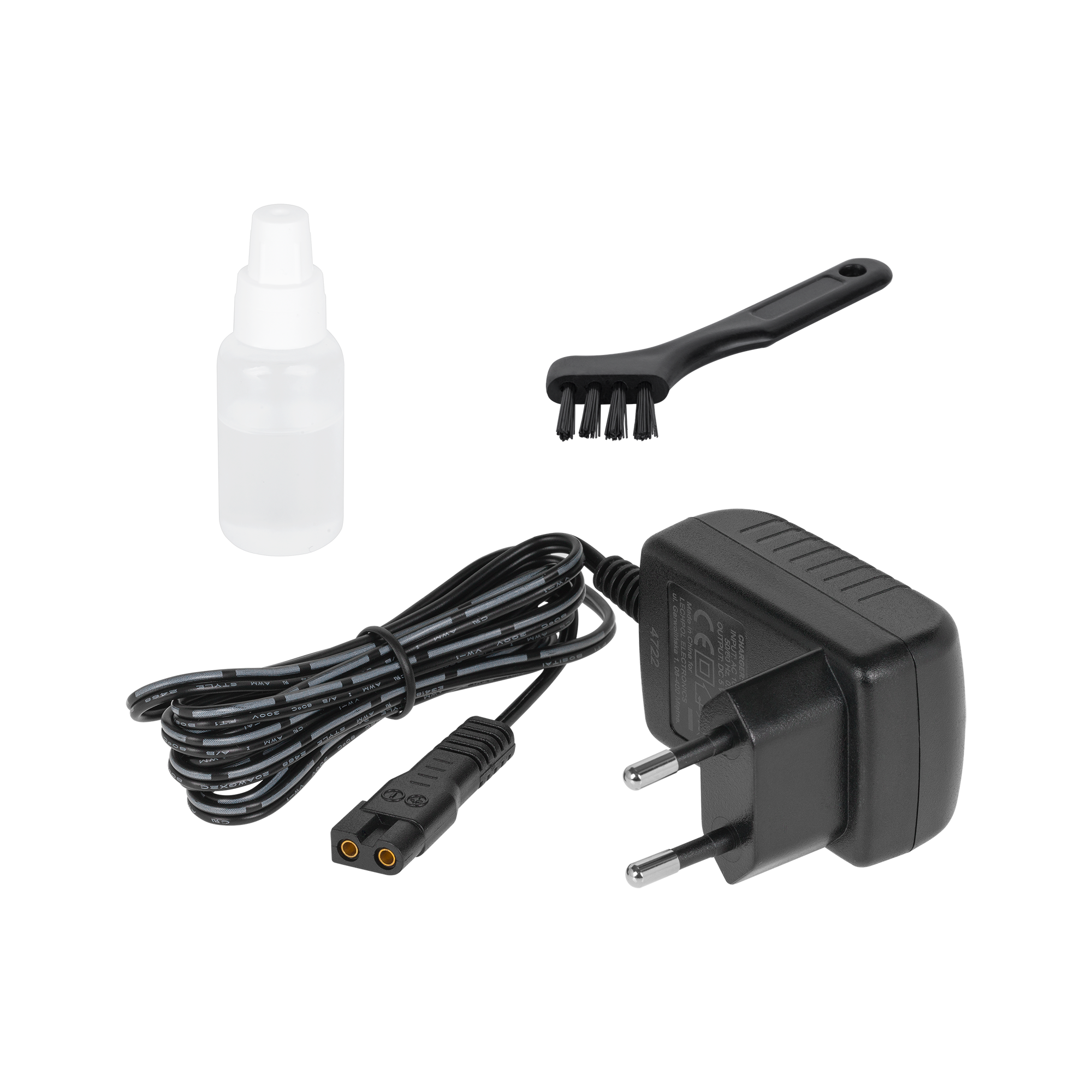 W zestawie: ładowarka sieciowa, stacja ładująca, nożyk 44 mm, nożyk 33 mm, precyzyjny trymer, trymer do nosa, 5 nasadek grzebieniowych, szczotka do czyszczenia, olejek do konserwacji, instrukcja obsługi