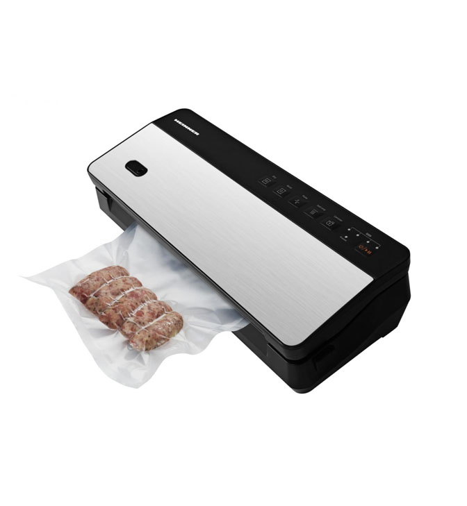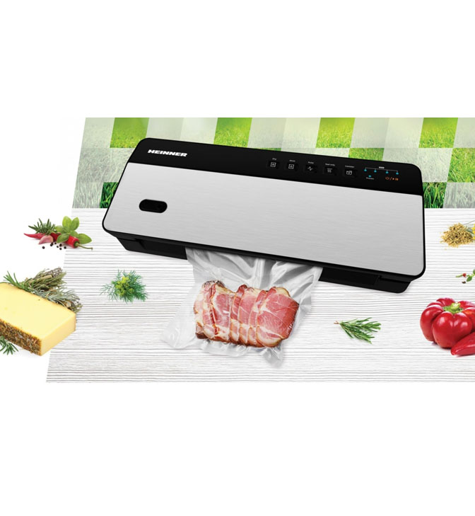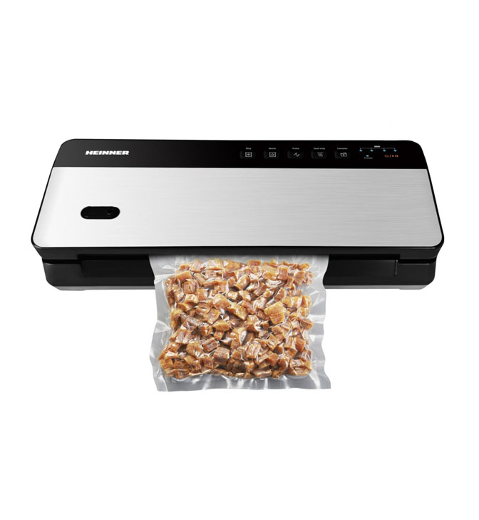 Belaidis vakuuminis pakavimo aparatas Heinner HAV-CRD80SS, įkraunamas, drėgnas ir sausas vakuumavimas, tik sandarinimo funkcija, ličio akumuliatorius 11.1V, 2000mAh, vakuumo galia: -0.6~-0.8 bar, veikimo laikas: 60 min, įmontuotas pjoviklis, USB įkrovimas, įkrovimo laikas: 3 val., ritinėlio laikymo skyrius, komplekte 1 maišelių ritinys (28x300 cm), 1 žarna indų vakuumavimui, galia: 80W, juodas.