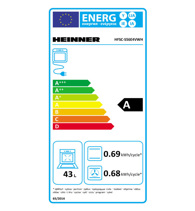 Heinner HFSC-S56E4VWH elektrinė viryklė, keraminė kaitlentė, 4 kaitinimo zonos, elektrinė orkaitė, A klasė, grilis, ventiliacija, 50x60 cm, balta