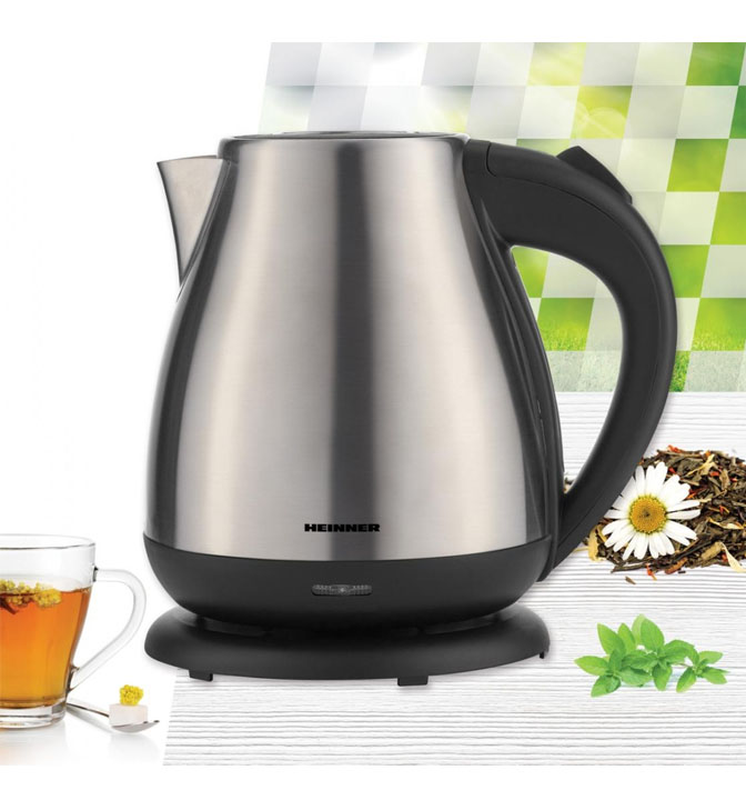 Elektrinis virdulys Heinner Solstice 17 HEK-17IX, 1850-2200 W, 1,7 l, nerūdijančio plieno kaitinimo elementas, apsauga nuo sauso užvirimo, automatinis išsijungimas, įjungimo ir išjungimo mygtukas, nerūdijantis plienas.