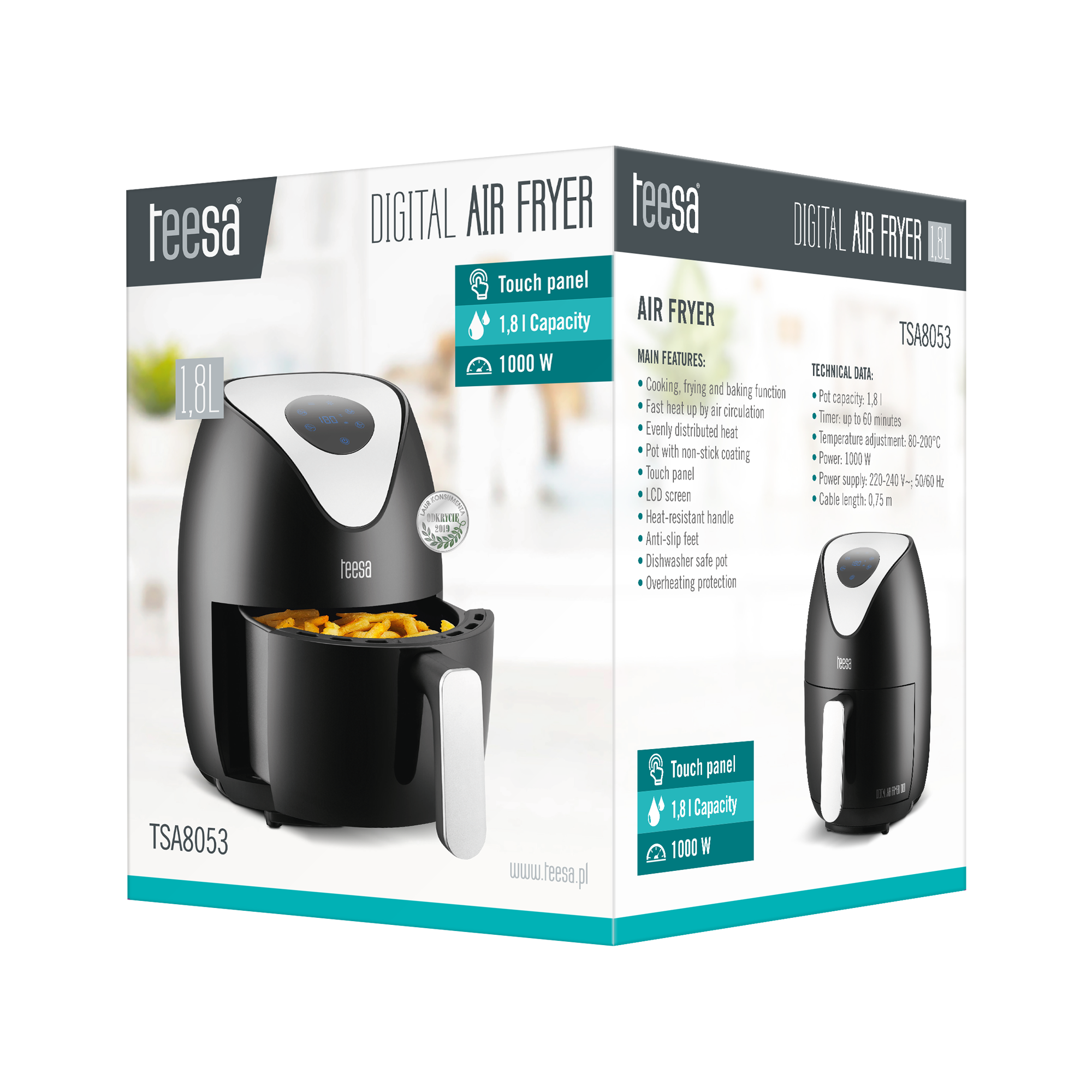 Frytkownica beztłuszczowa TEESA DIGITAL AIR FRYER 1,8L