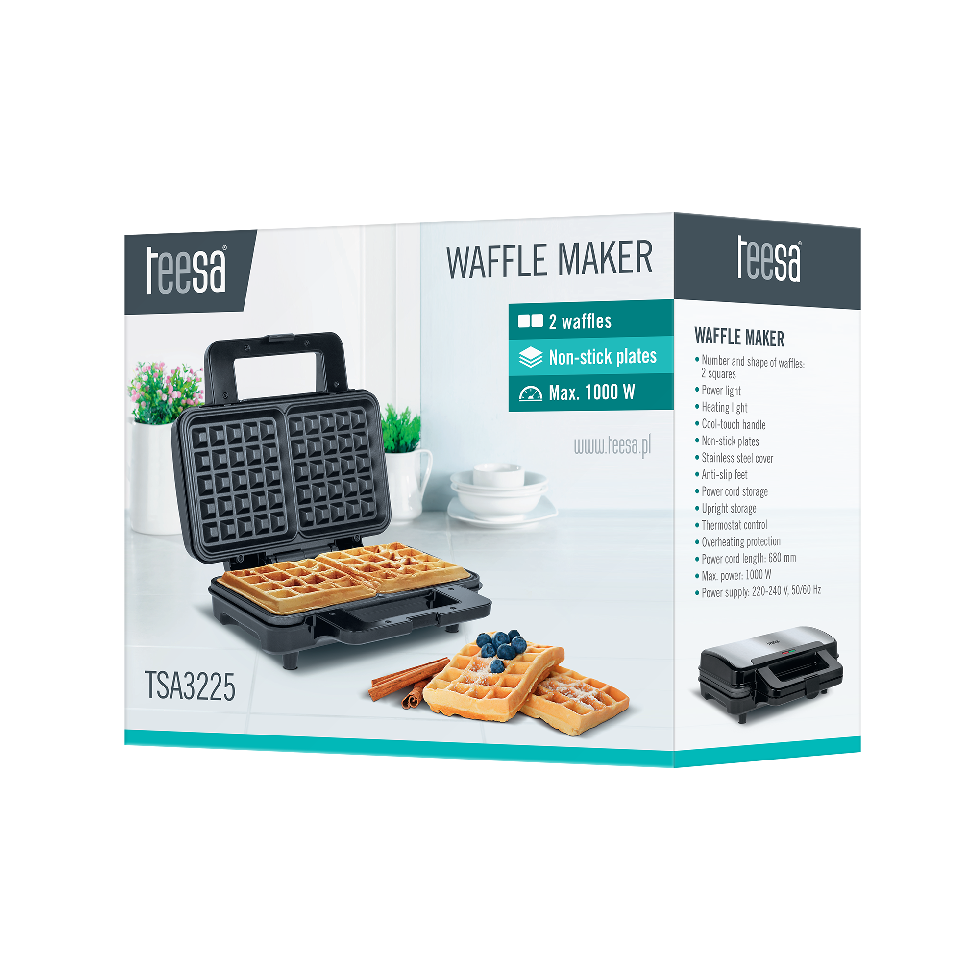 Liczba i kształt gofrów: 2 kwadraty