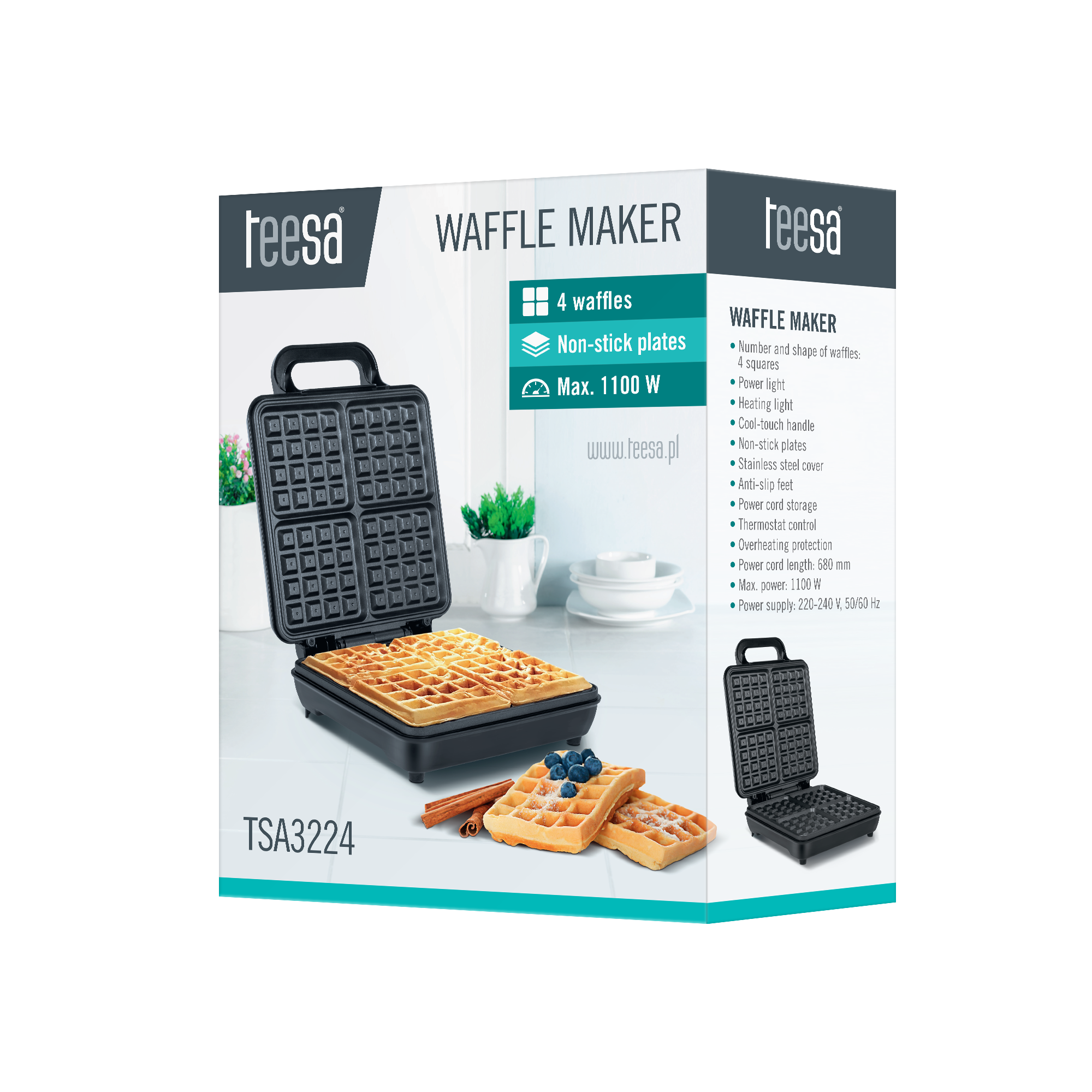 Liczba i kształt gofrów: 4 kwadraty