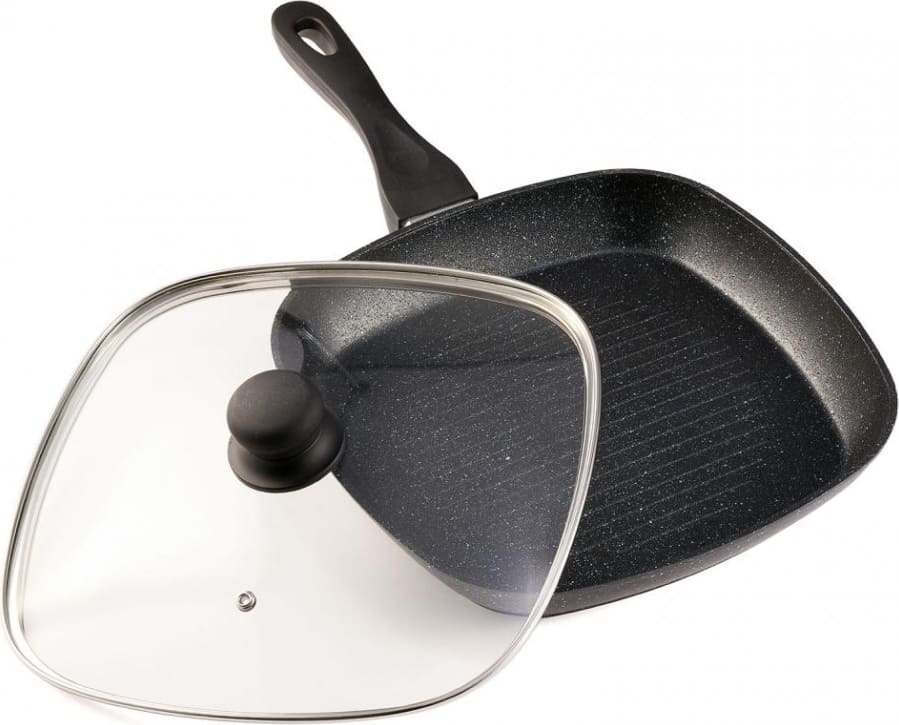 BLACK SAND grilio keptuvė su dangčiu skirta sveikam grilinimui ir kasdieniam maisto ruošimui. Storas kaltinio aliuminio korpusas užtikrina puikų šilumos paskirstymą, o 3 sluoksnių nelimpanti danga leidžia gaminti sveikiau.