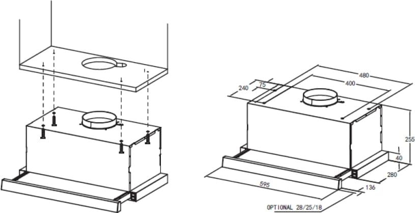 | Montavimas | Teleskopinis — montuojamas po spintelės dugnu |