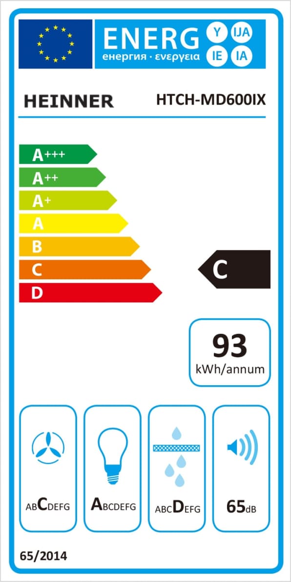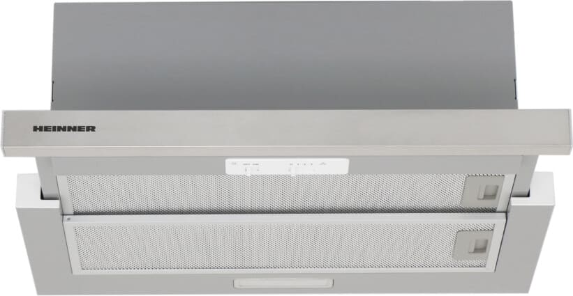 Teleskopinė gaubtinė viryklė Heinner HTCH-MD600IX, 60 cm, maksimali absorbcijos galia: 630 m³/h, 2 greičio nustatymai, variklis: 1 × 215 W, LED lemputė: 1 × 1,5 W, 2 aliuminio filtrai, išmetimo vamzdžio skersmuo: 150 mm, matmenys (L×A×I): 59,5×30,8×25,5 cm, nerūdijantis plienas