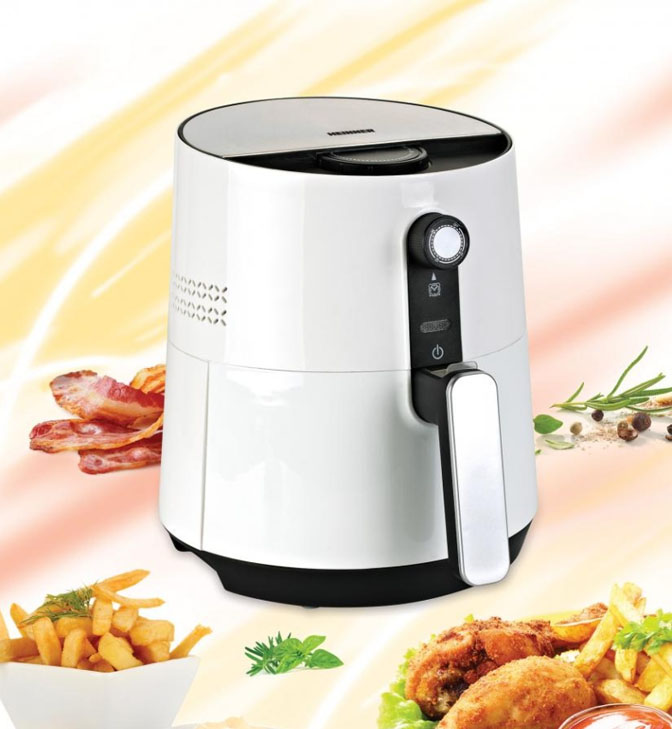 Karšto oro gruzdintuvė Heinner HAF-1300WH, 1300W, bendra talpa: 3.6L, nuimamas nelimpančios dangos krepšelis: 2.6L, išorinis puodas su nelimpančia danga, reguliuojamas termostatas: 0-200°C, laikmatis: iki 60 min, šalta rankena, apsauga nuo perkaitimo, balta