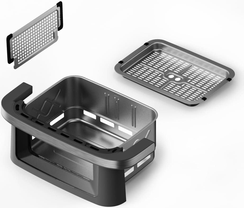 Heinner HAF-C10DB22GREY – galinga dviguba karšto oro gruzdintuvė su 10 l talpa ir 2200 W galia. Ji naudoja 360° karšto oro cirkuliacijos technologiją ir leidžia vienu metu ruošti skirtingus patiekalus dėl metalinio skyriklio.