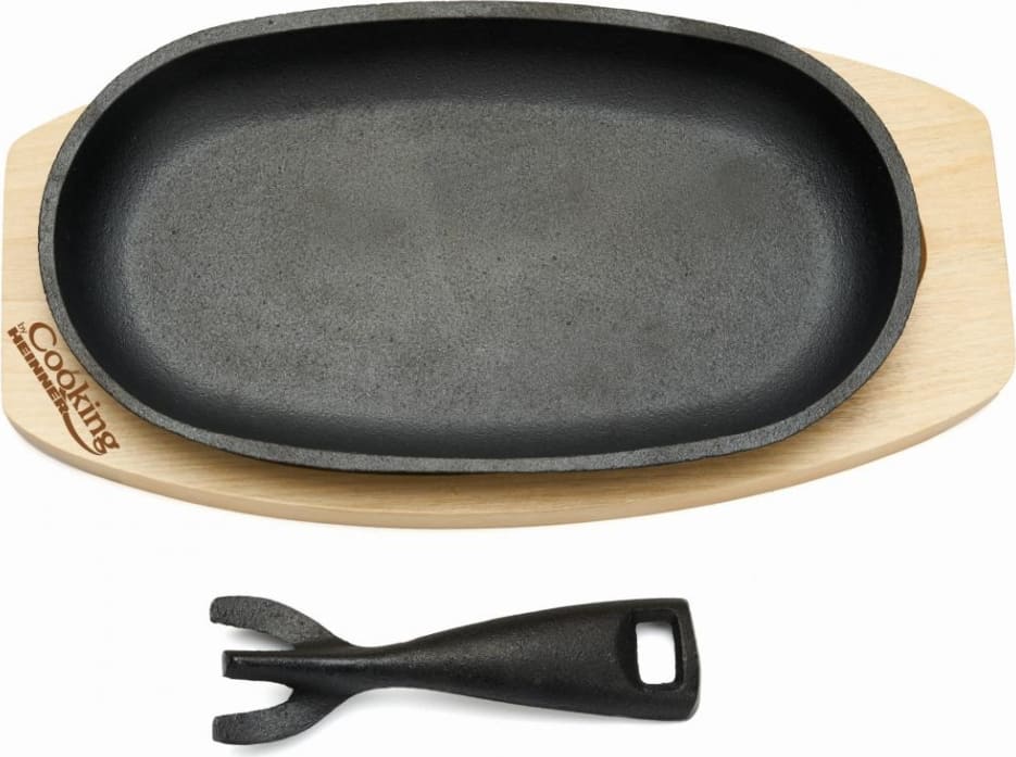 Keptuvė steikams su medine baze ketaus 24x14cm HR-YT-995 HEINNER