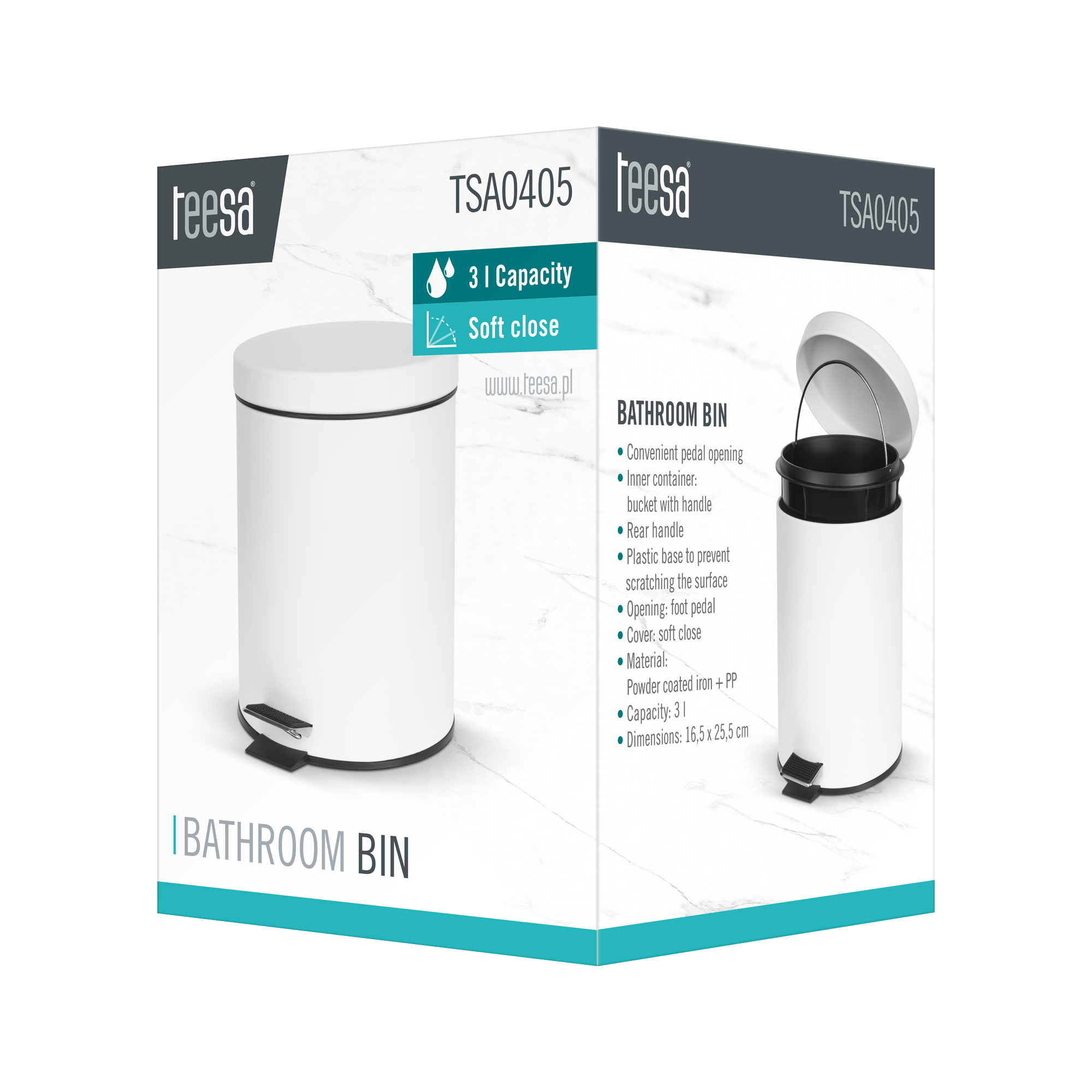 Kosz na śmieci łazienkowy 3 l (biały)