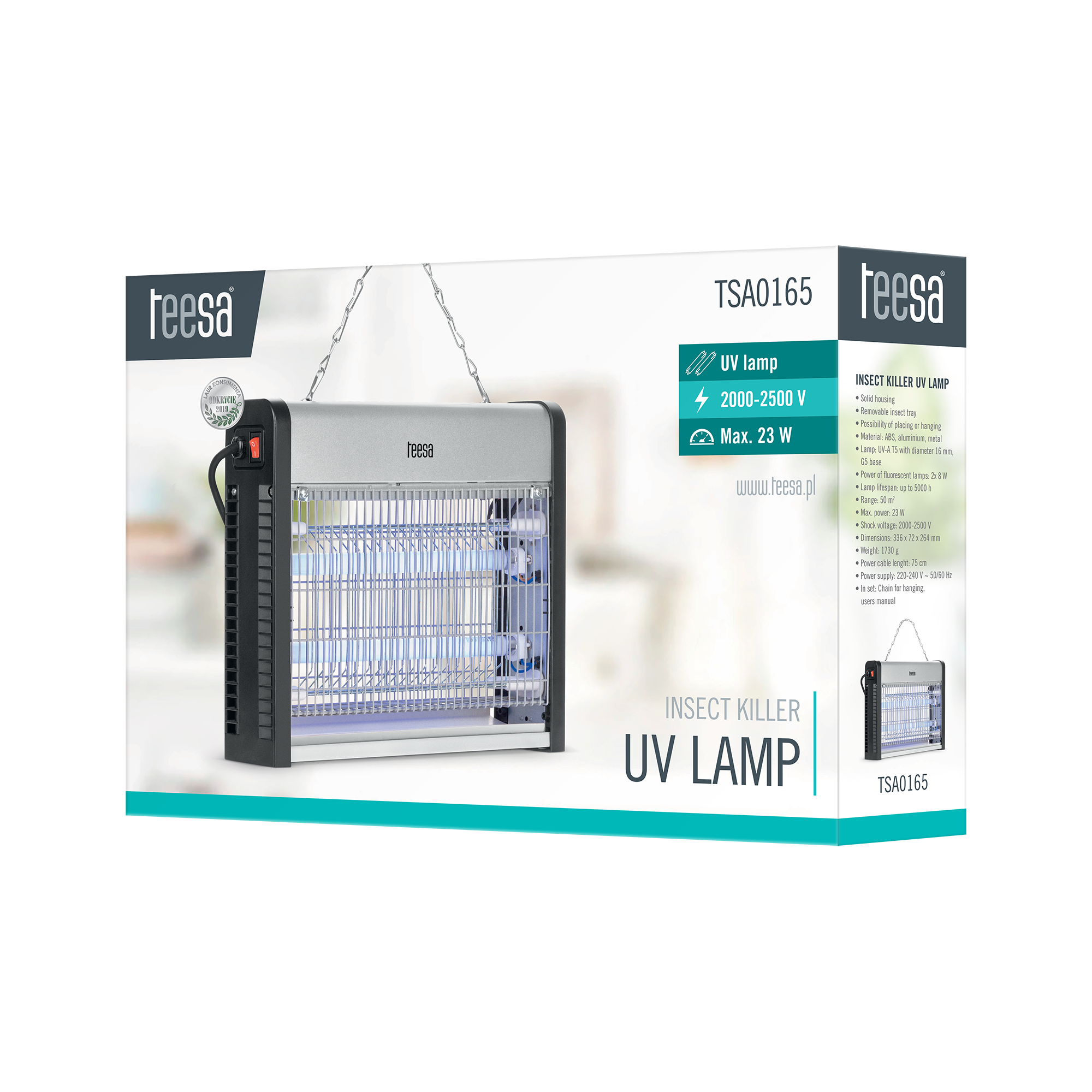Rodzaj lampy: UV-A T5 o średnicy 16 mm, trzonek G5 (wymienne TSA0165L)