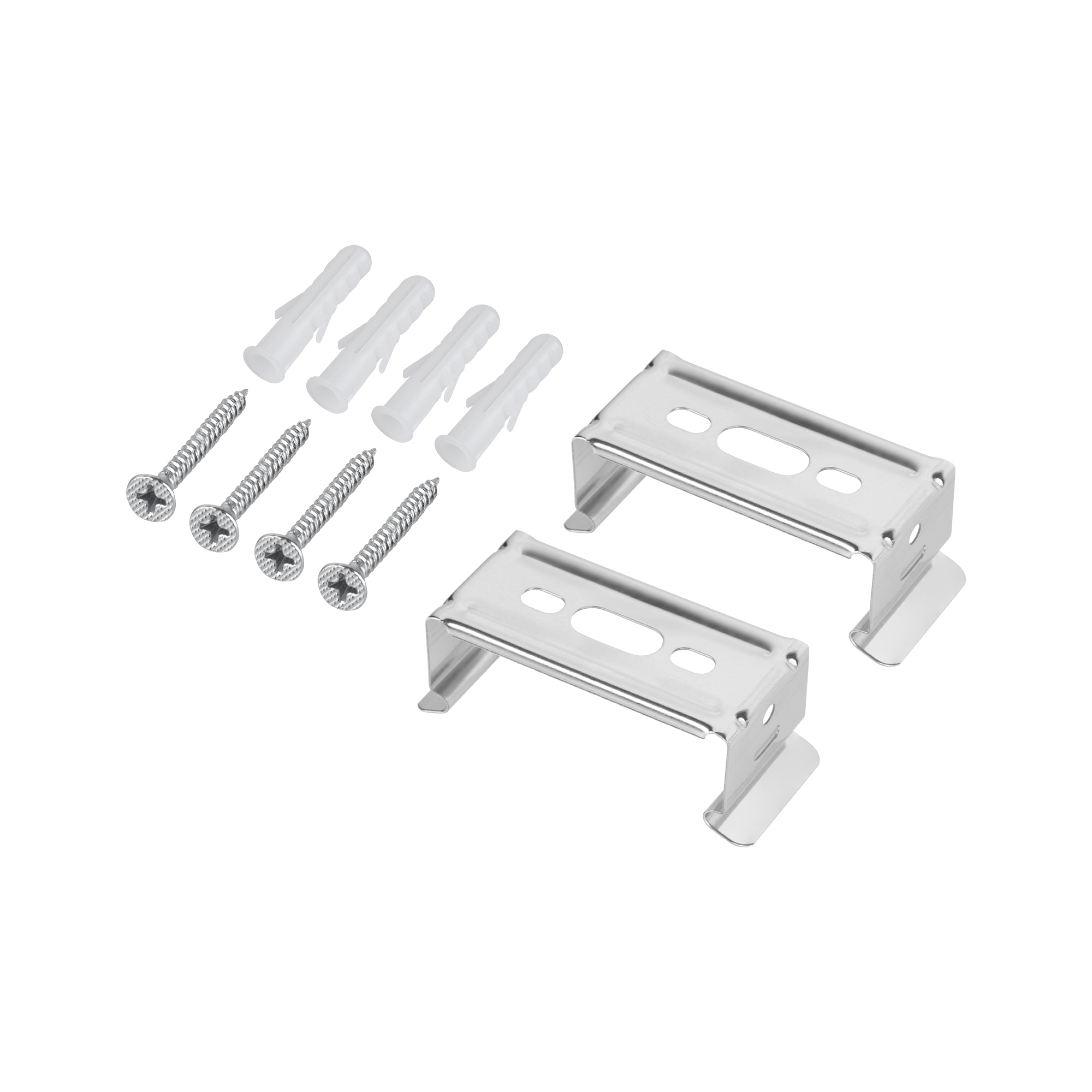 W zestawie: 2 metalowe klipsy, 4 śruby, 4 kołki rozporowe