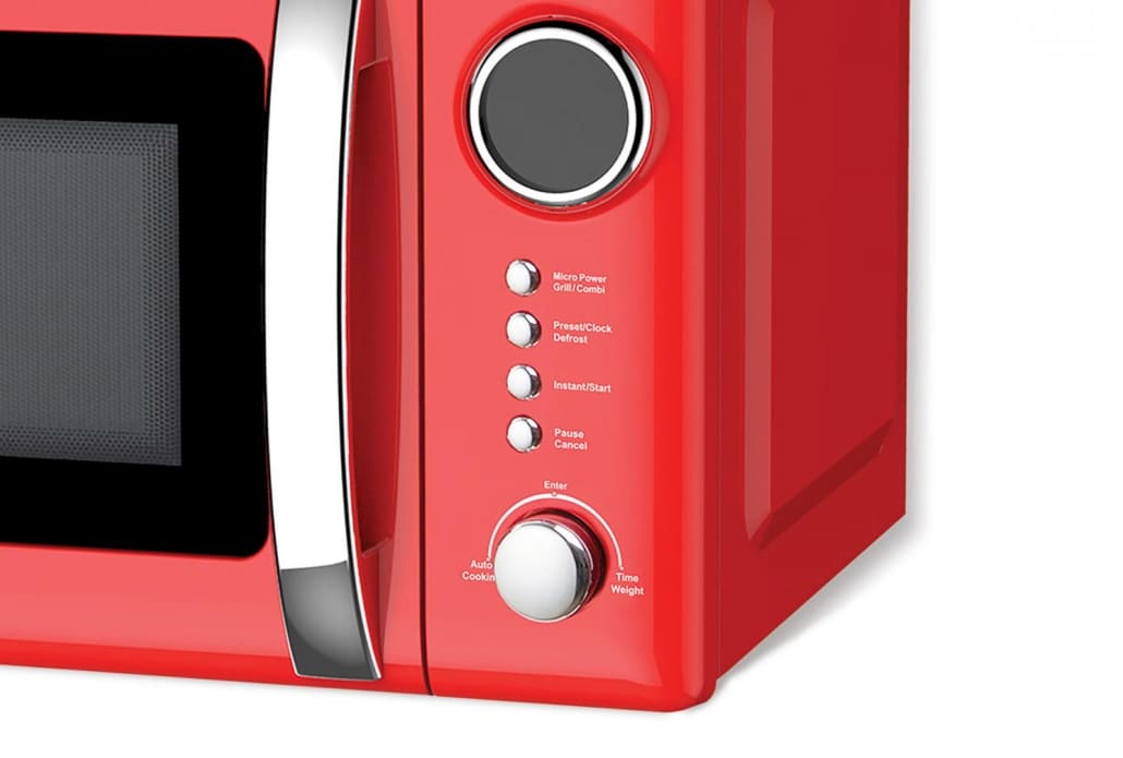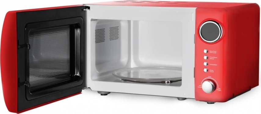 Mikrobangų krosnelė Heinner HMW-20GRD, Talpa: 20 l, Skaitmeninis valdymas, LED ekranas, Mikrobangų galia: 700 W, Grilio galia: 800 W, 5 galios lygiai, 12 automatinių gaminimo meniu, 60 min. gaminimo laikas, Atitirpinimo funkcija, Garso signalas gaminimo pabaigoje, Vaikų apsaugos funkcija, Stiklinis besisukantis padėklas 245 mm, Chromuota durelių rankena, Matmenys (P × G × A): 45,1 × 34,5 × 25,8 cm, Spalva: Raudona