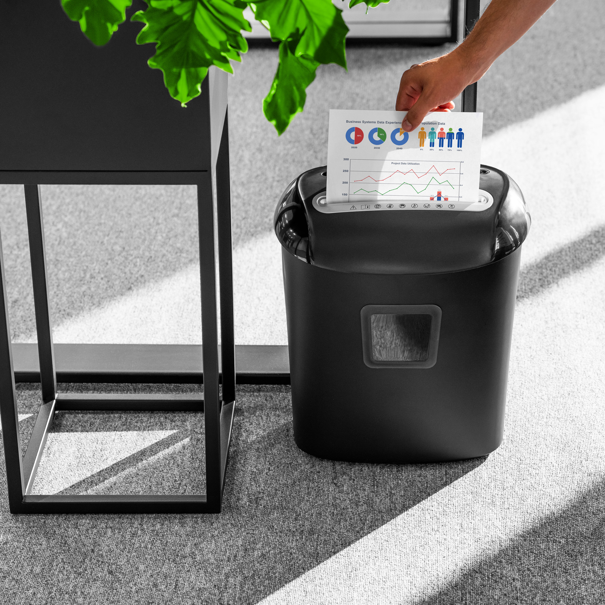 Niszczony materiał: papier, płyty CD, DVD, karty płatnicze, zszywki