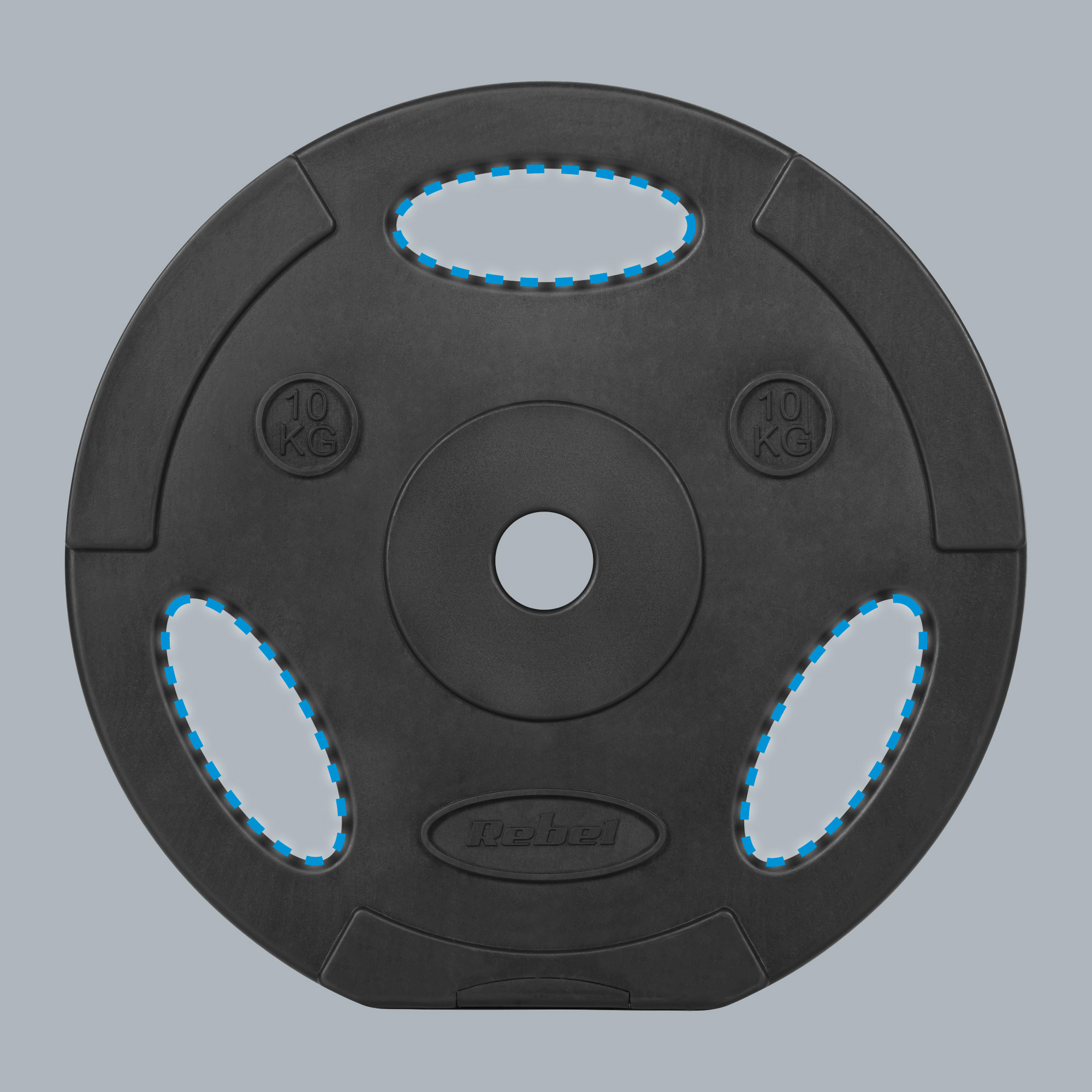 Bituminės apkrovos rinkinys 2x10kg, skylė 31mm, plokštė su rankenomis, REBEL ACTIVE