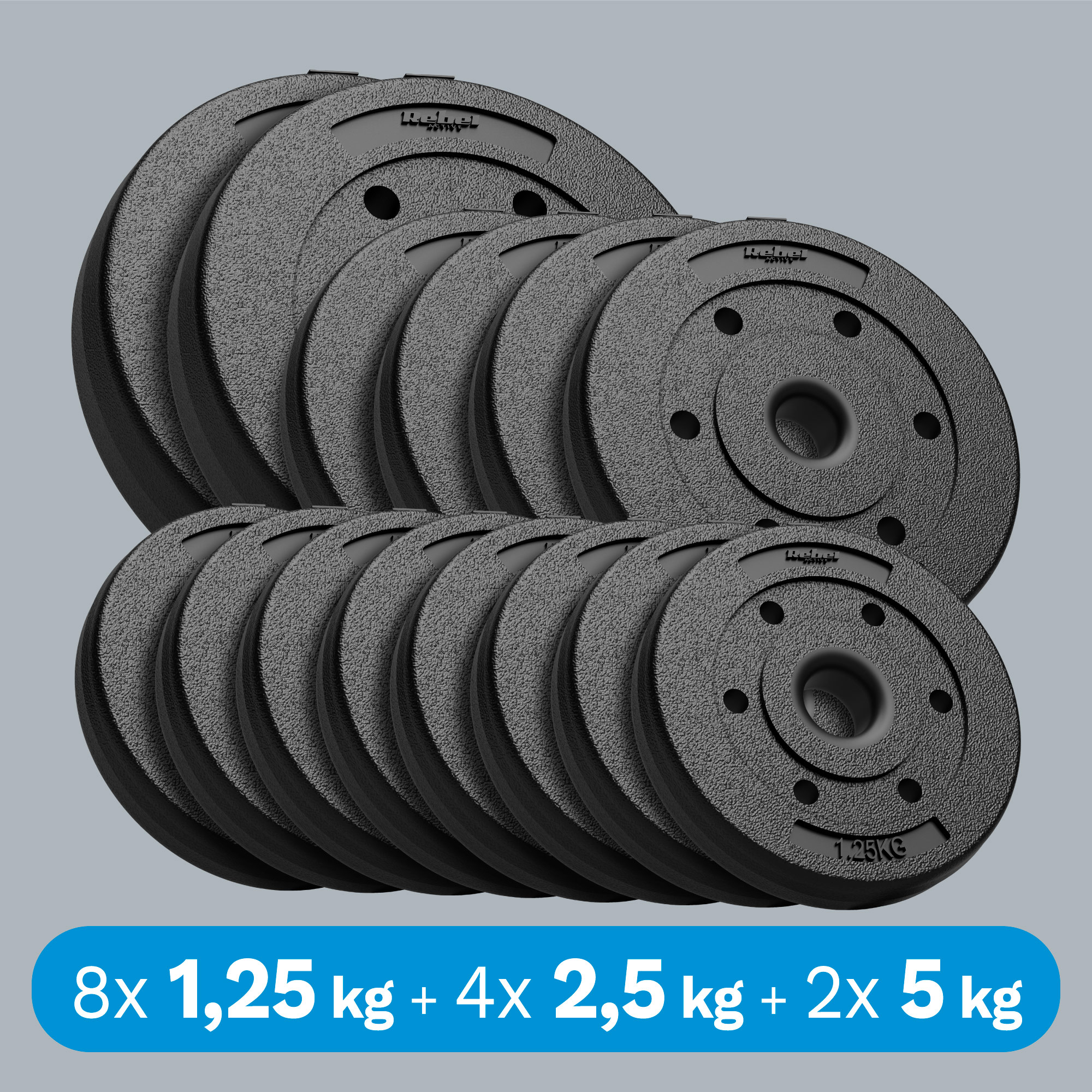 Waga talerza: 8x1,25 kg, 4x2,5 kg, 2x5 kg