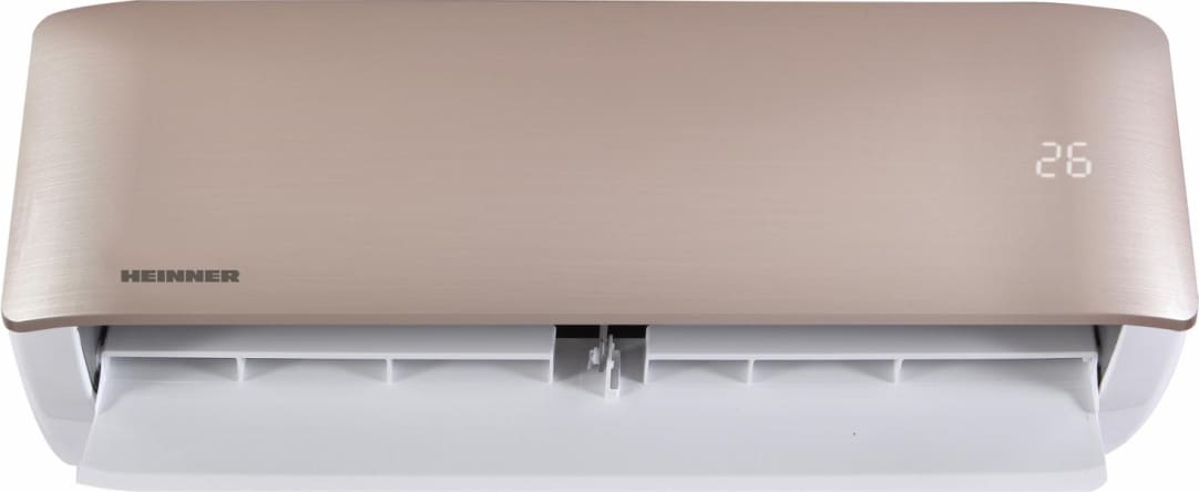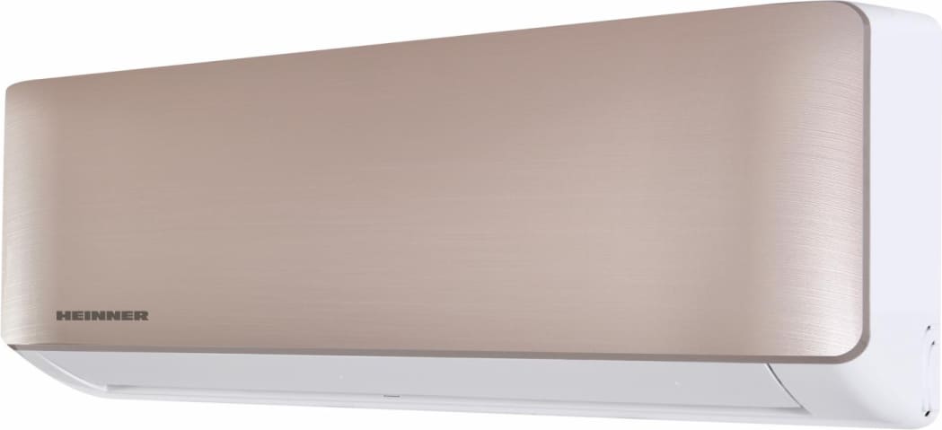 Oro kondicionierius Heinner Onix Eco HAC-CO12WFN-GD, Smart Inverter, galia: 12000 BTU, energijos efektyvumo klasė (vėsinimas): A++, energijos efektyvumo klasė (šildymas): A+, Wi-Fi valdymas, ECO funkcija, automatinio paleidimo iš naujo funkcija, 1 W budėjimo režimo energijos sąnaudos, šaltnešio nuotėkio aptikimo funkcija, didelio tankio filtras, savidiagnostikos funkcija, tylusis režimas, Turbo funkcija, laikmatis, spalva: Auksinė