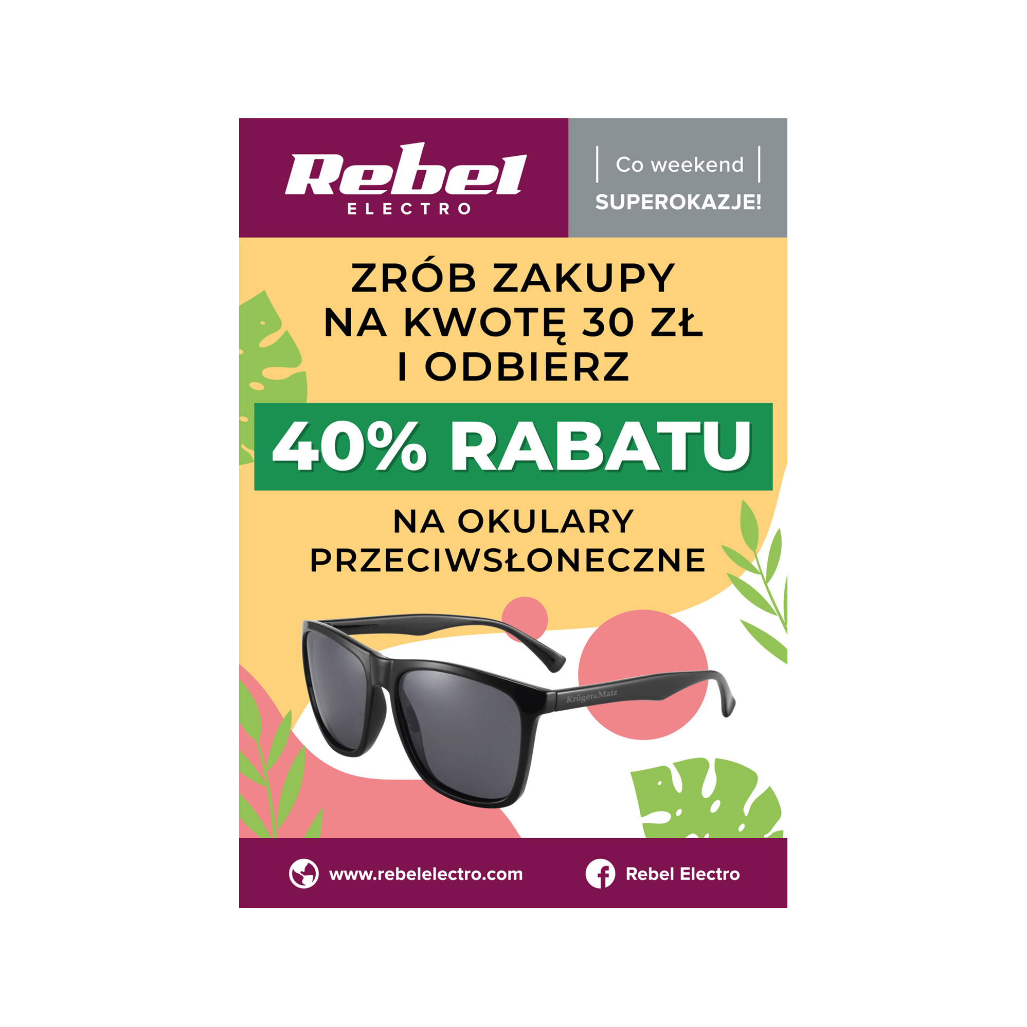 Treść: Rebel Electro - Co weekend SUPEROKAZJE: Zrób zakupy na kwotę 30 zł i odbierz 40% rabatu na okulary przeciwsłoneczne