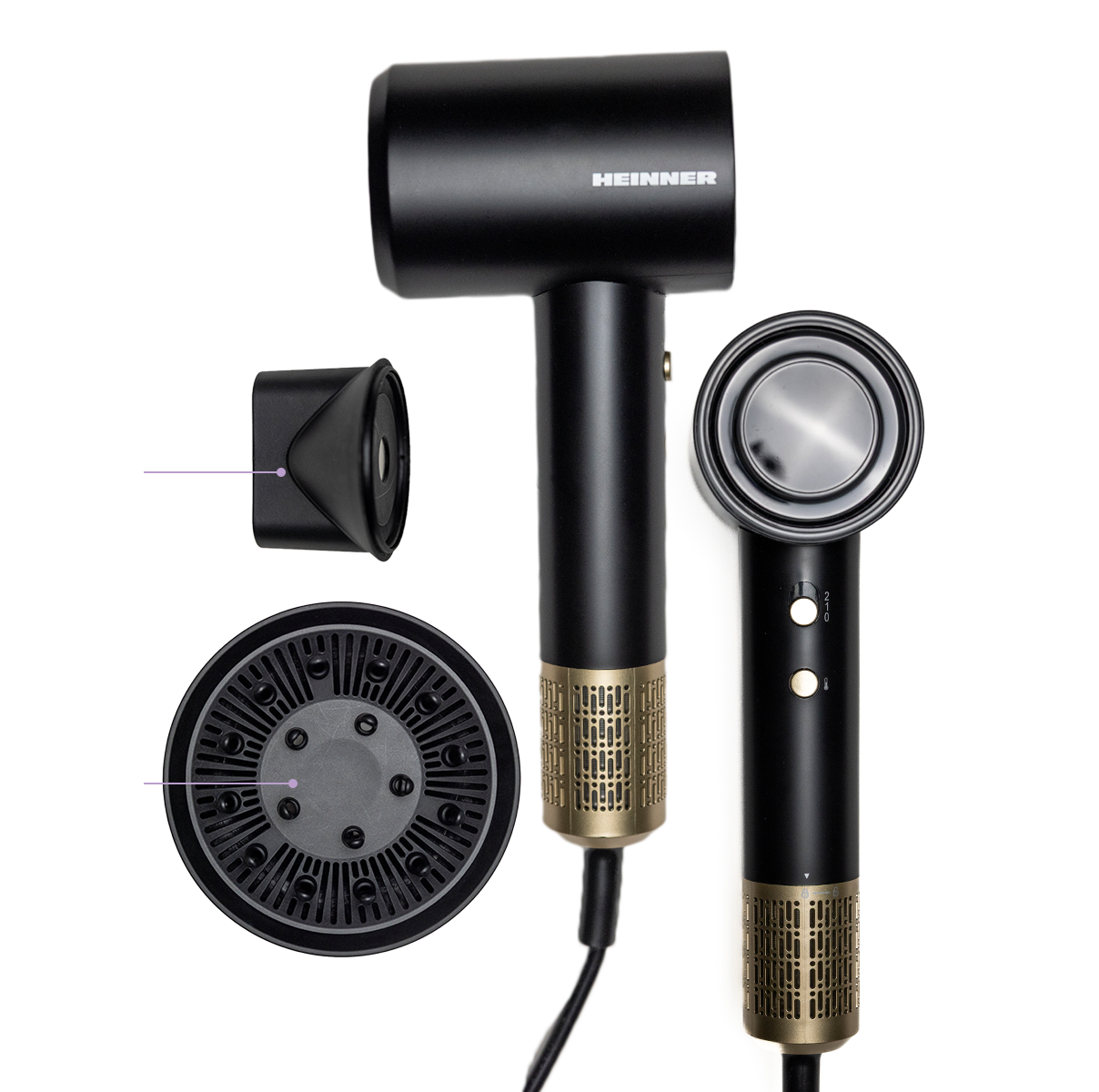 Plaukų džiovintuvas 1600 W, juodas/auksinis, HHD-R16BLDC-BK HEINNER