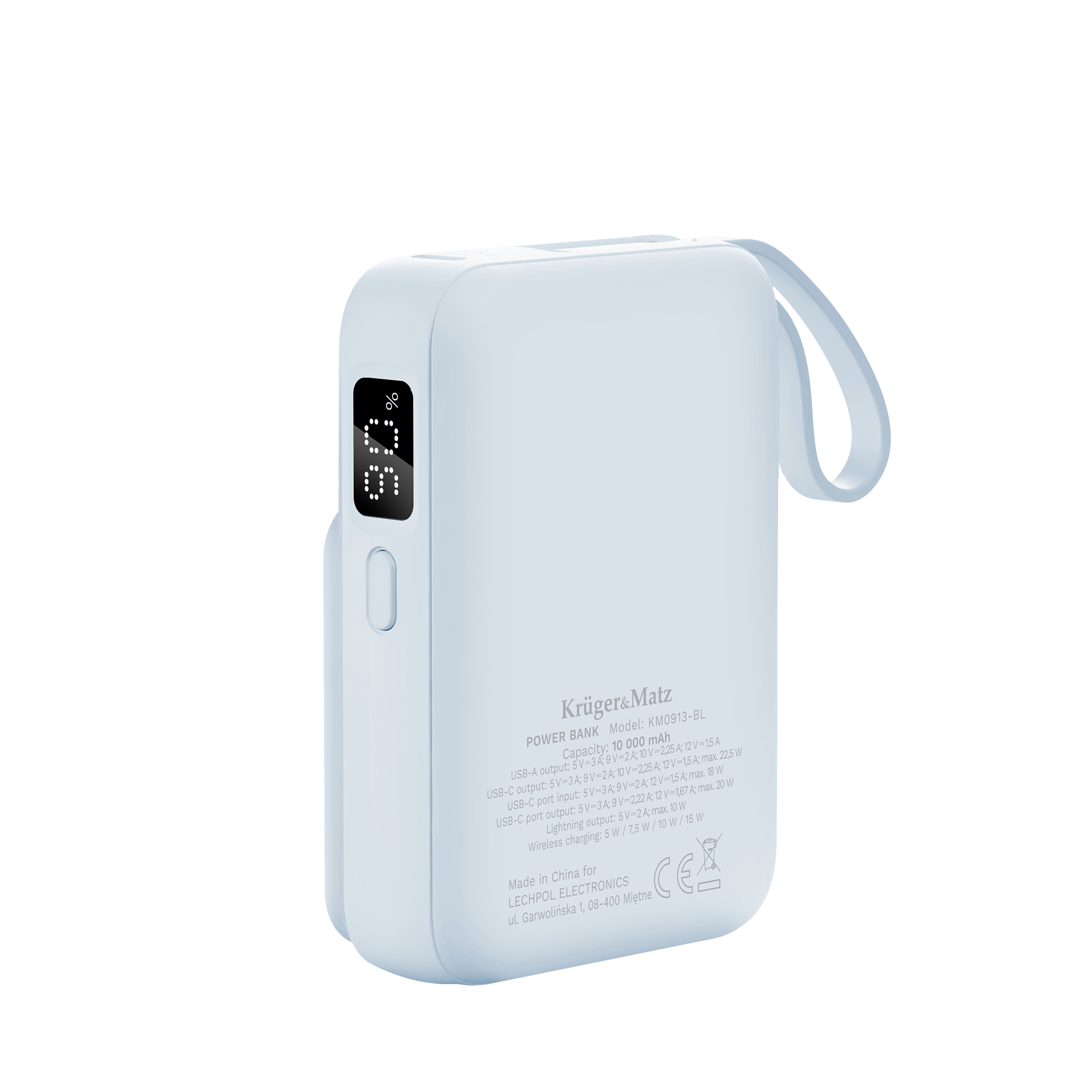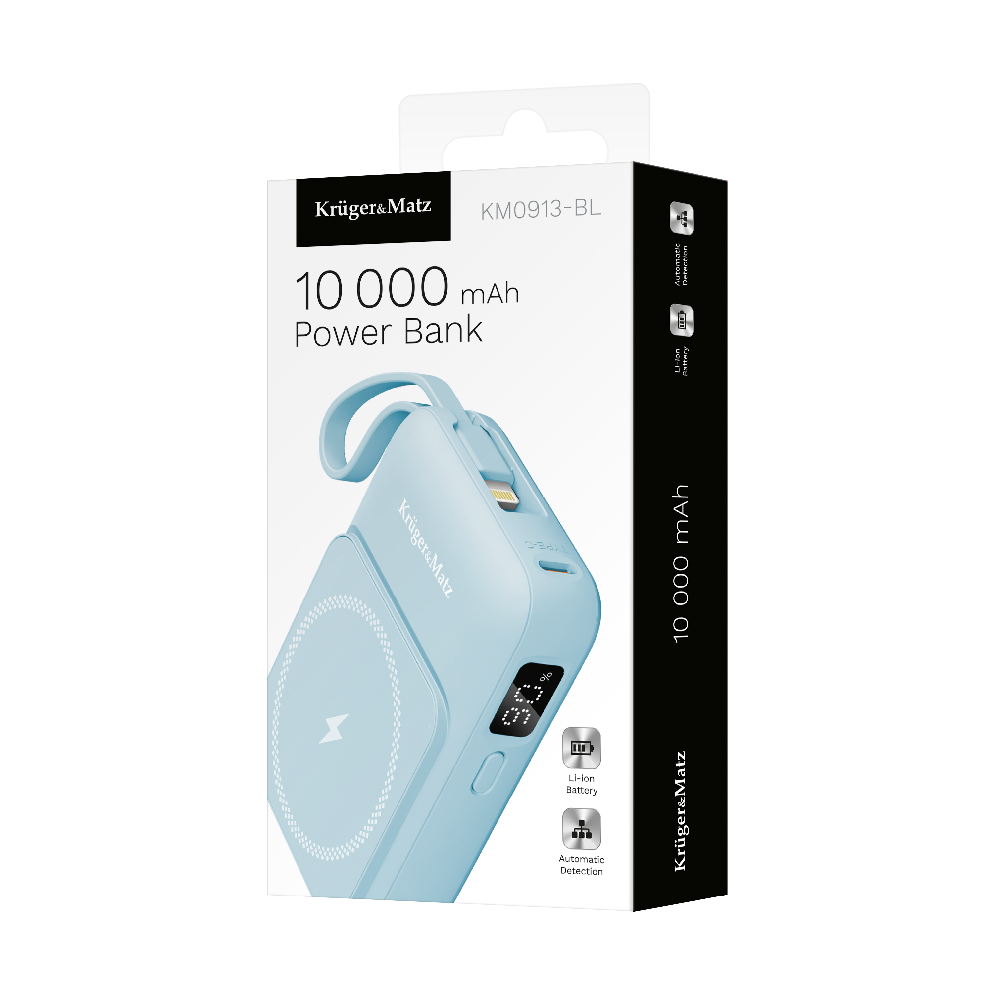 POWERBANK indukcyjny Kruger&Matz 10000 mAh magnetyczny z kablem niebieski