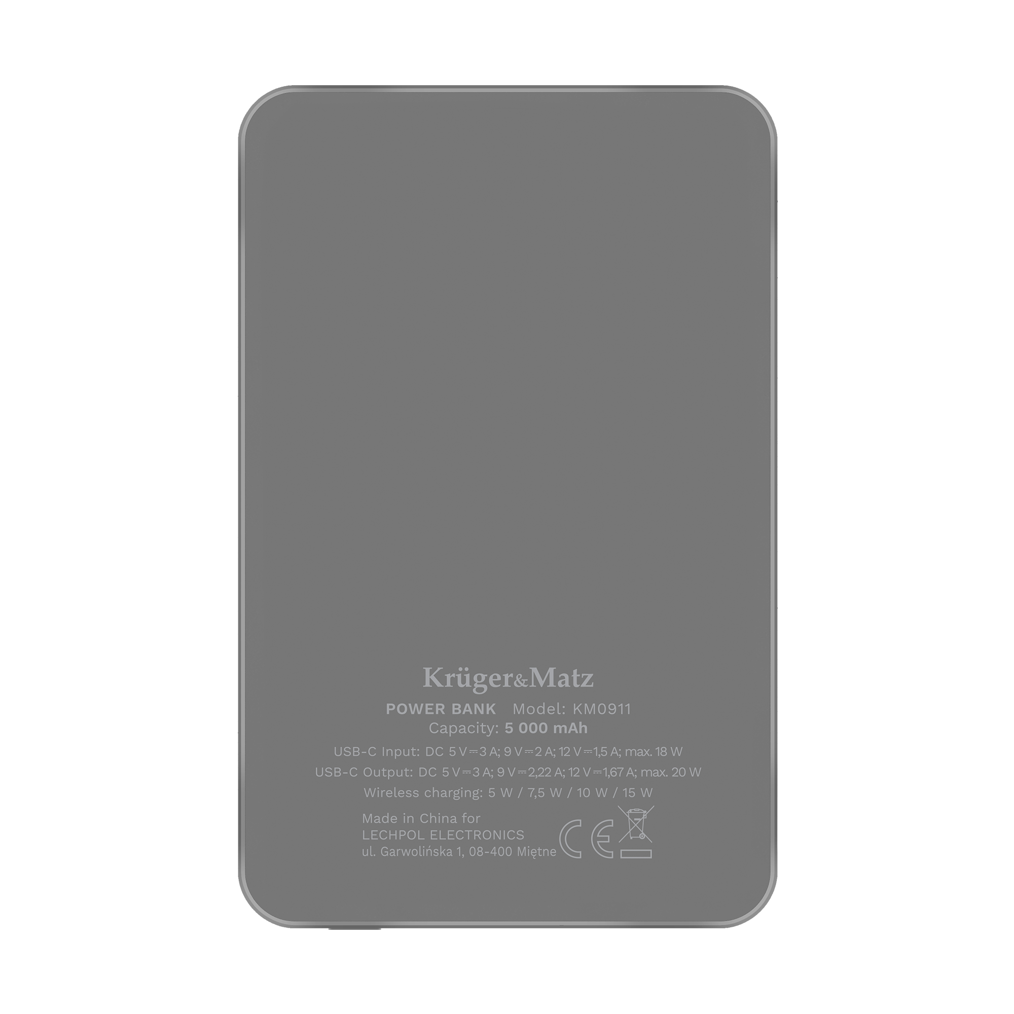POWERBANK indukcyjny Kruger&Matz 5000 mAh magnetyczny szary