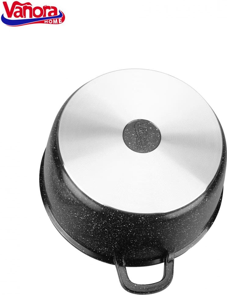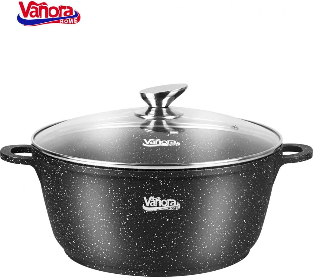Šis Vanora Home Classic puodas pagamintas iš lieto aliuminio ir turi juodą nelipnią keramikinę dangą su marmuro efektu. Tvirta aliuminio konstrukcija efektyviai išlaiko šilumą, taip ženkliai sumažindama gaminimo laiką ir energijos sąnaudas.