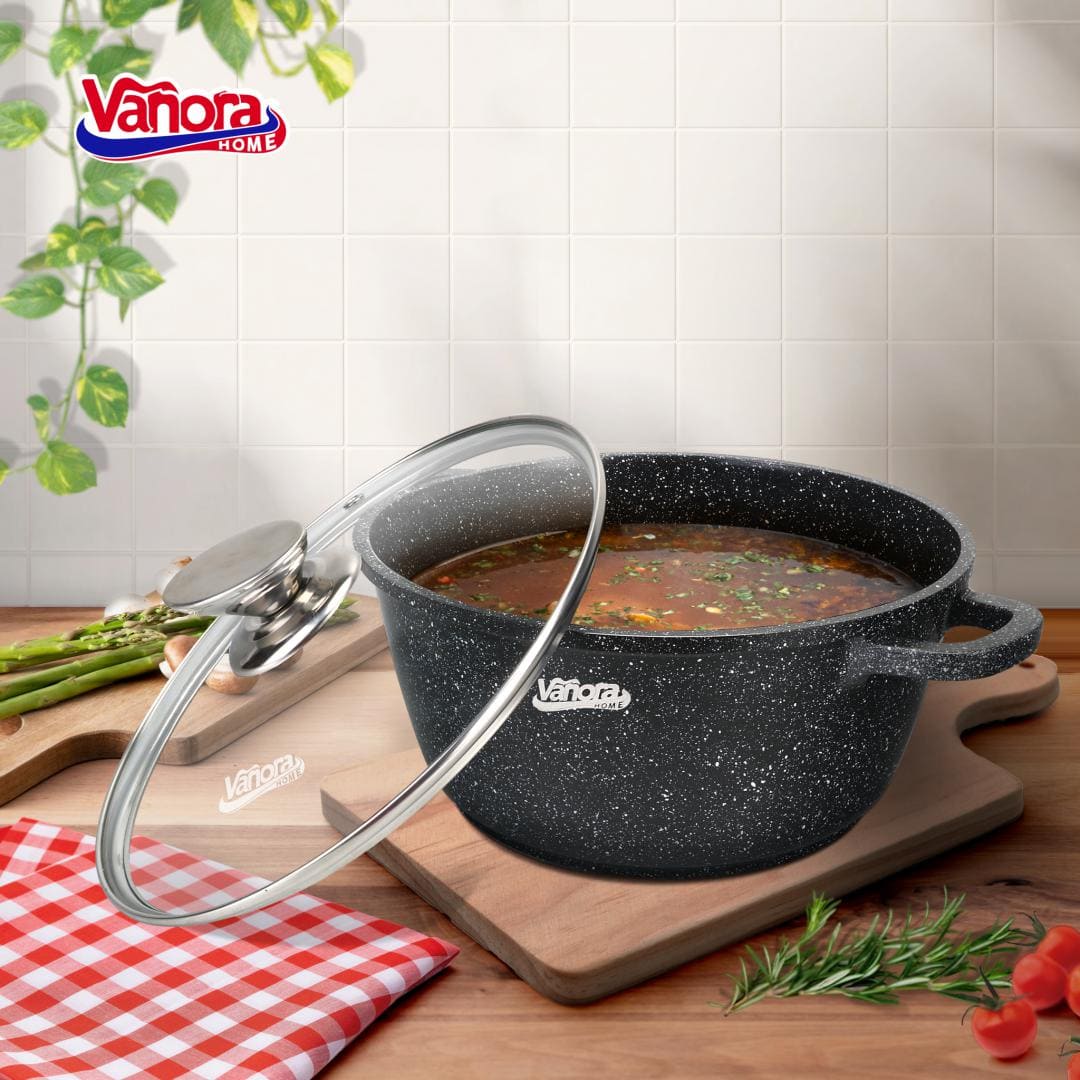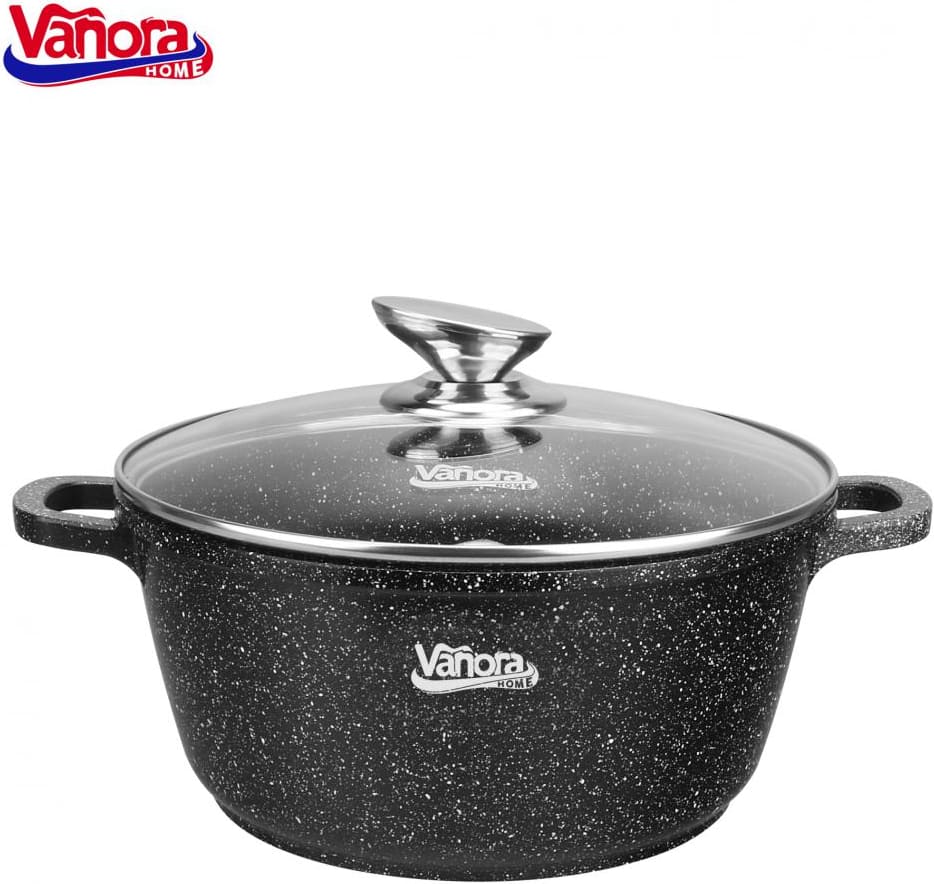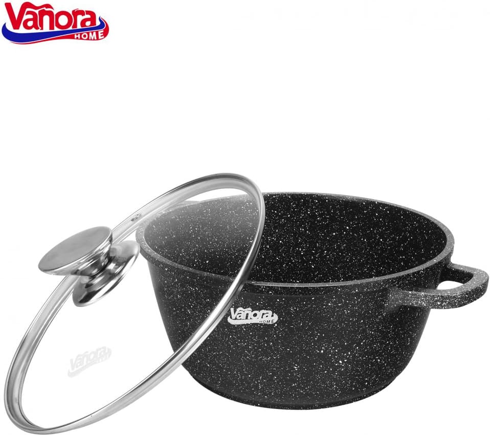 Šis Vanora Home Classic puodas pagamintas iš lieto aliuminio ir turi juodą nelipnią keramikinę dangą su marmuro efektu. Tokia konstrukcija leidžia ilgiau išlaikyti šilumą, žymiai sutrumpinant maisto gaminimo laiką ir sumažinant energijos sąnaudas.