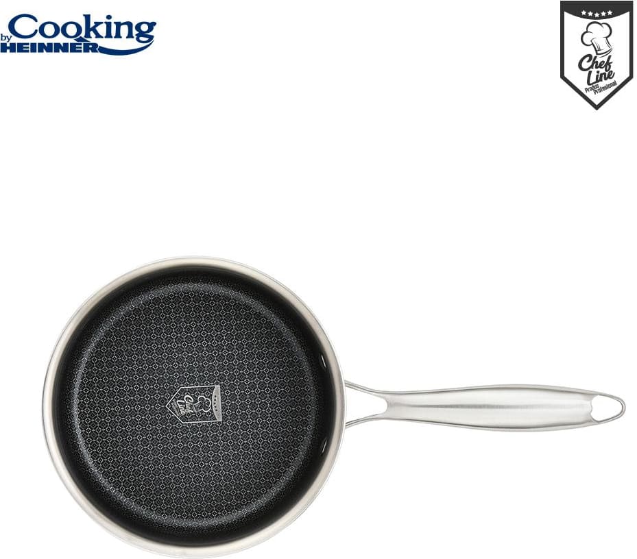 Vidus padengtas HONEYCOMB keramine nelimpančia, įbrėžimams atsparia danga. Kapsuliuotas indukcinis dugnas tinka visų tipų viryklėms.