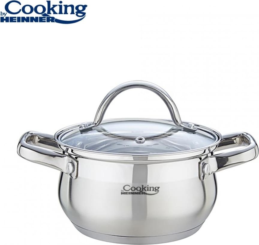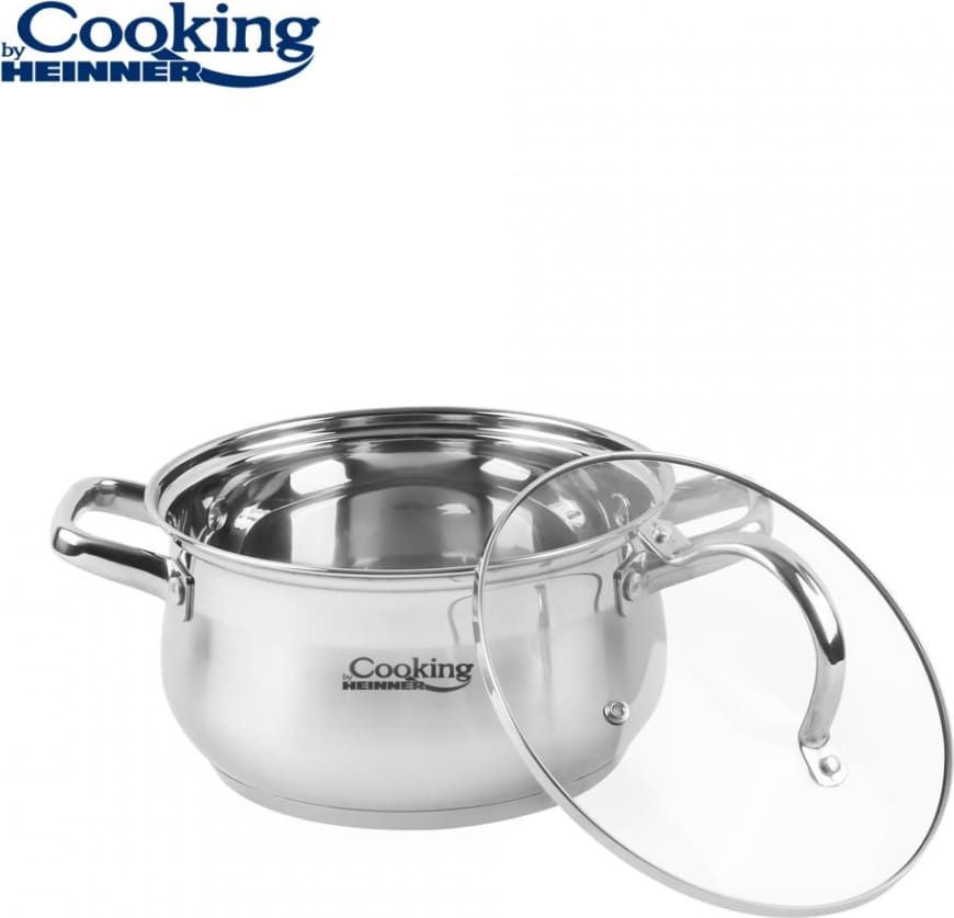NERŪDIJANČIO PLIENO PUODAS SU NELIMPANČIA DANGA IR STIKLINIU DANGČIU, 18 x 10.5 CM, 2.6 L, AMIRA, COOKING BY HEINNER