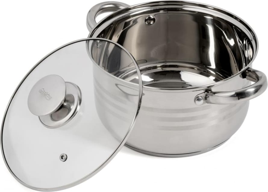 NERŪDIJANČIO PLIENO PUODAS SU NELIMPANČIA DANGA IR STIKLINIU DANGČIU, 20 x 11.5 CM, 3.5 L, MYRA