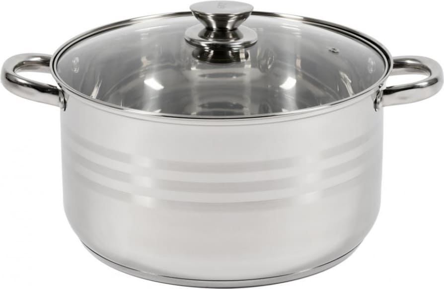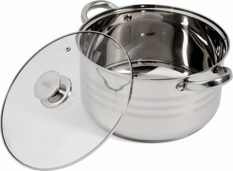 MYRA nerūdijančio plieno puodas skirtas didesnio tūrio ir efektyviam maisto gaminimui. Jis pagamintas iš 0,6 mm storio nerūdijančio plieno ir turi 5 sluoksnių kapsuliuotą dugną, kuris užtikrina tolygų šilumos paskirstymą ir mažesnes energijos sąnaudas.