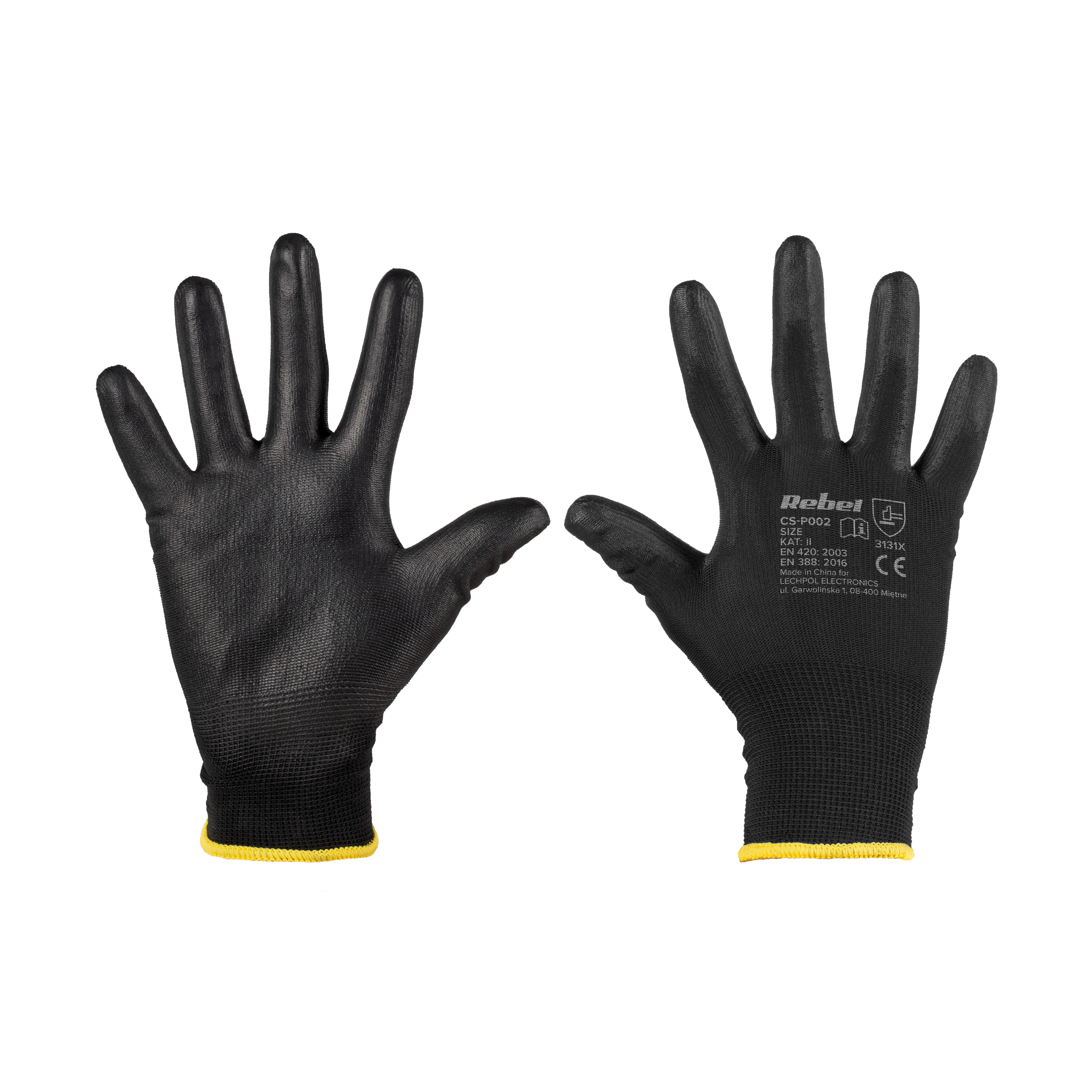 - rękawice wykonane są w całości z poliestru