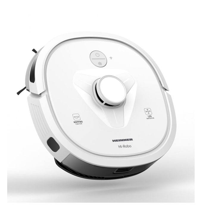 Robotas dulkių siurblys, plaunantis, Heinner HI-Robo HRVC-M33WH, Akumuliatorius 14,4 V / 3350 mAh, Siurbimo galia: 2000Pa, TUYA App, Variklis BLDC, Mop funkcija, Navigacija LDS, Akumuliatoriaus autonomija: 180 min, Įkrovimo laikas: 3-5 h, Dulkių talpyklos talpa: 600 ml, Vandens talpyklos talpa: 250 ml, Susidūrimo jutikliai, Apsaugos nuo kritimo jutikliai, Kliūčių atstumas: 2 cm, Priedai: 2 x šoniniai šepetėliai, 1 x šluostė, 1 x HEPA filtras, Spalva: balta