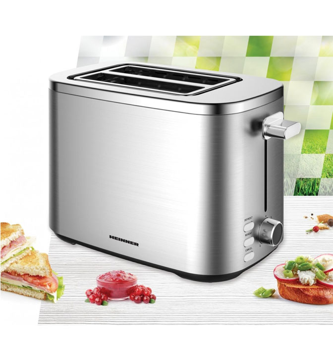 Skrudintuvas HEINNER sparkle toast htp-800ss, 800 W, Talpa: 2 griežinėliai, 7 skrudinimo lygiai, Funkcijos: šildymas, atšildymas, atšildymas, atšaukimas, Šviesos diodų indikatorius, Maitinimo laido laikymo vieta, Metalinis korpusas.