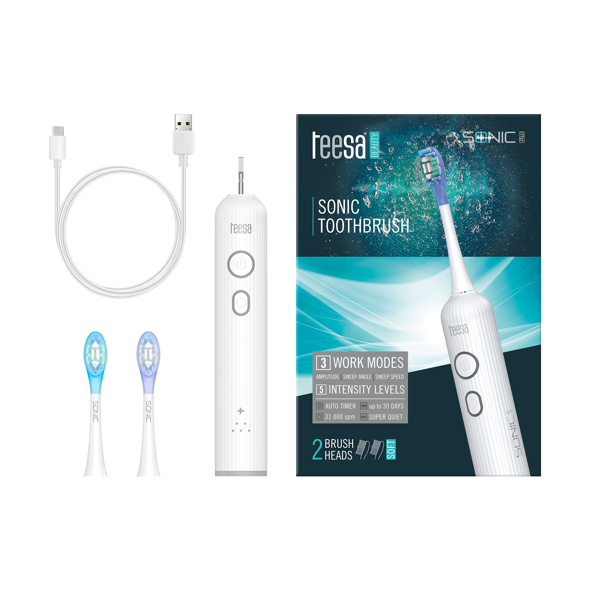 Soniczna szczoteczka do zębów Teesa Sonic Elite biała