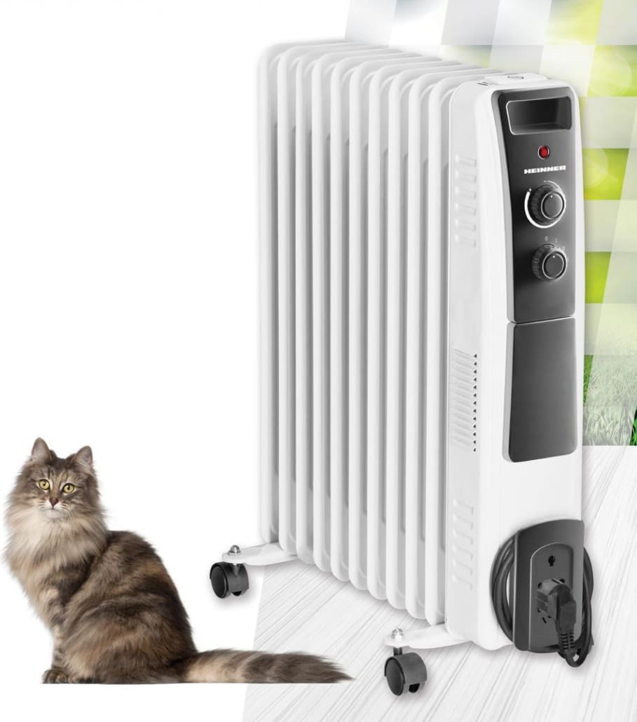 Alyvuotas radiatorius Heinner HOH-Y11WB, 11 elementų 125 x 580 mm, 3 šilumos nustatymai: 1000/1500/2500 W, apsauga nuo perkaitimo, reguliuojamas termostatas, maitinimo indikatorius, ratukai lengvam manevravimui.