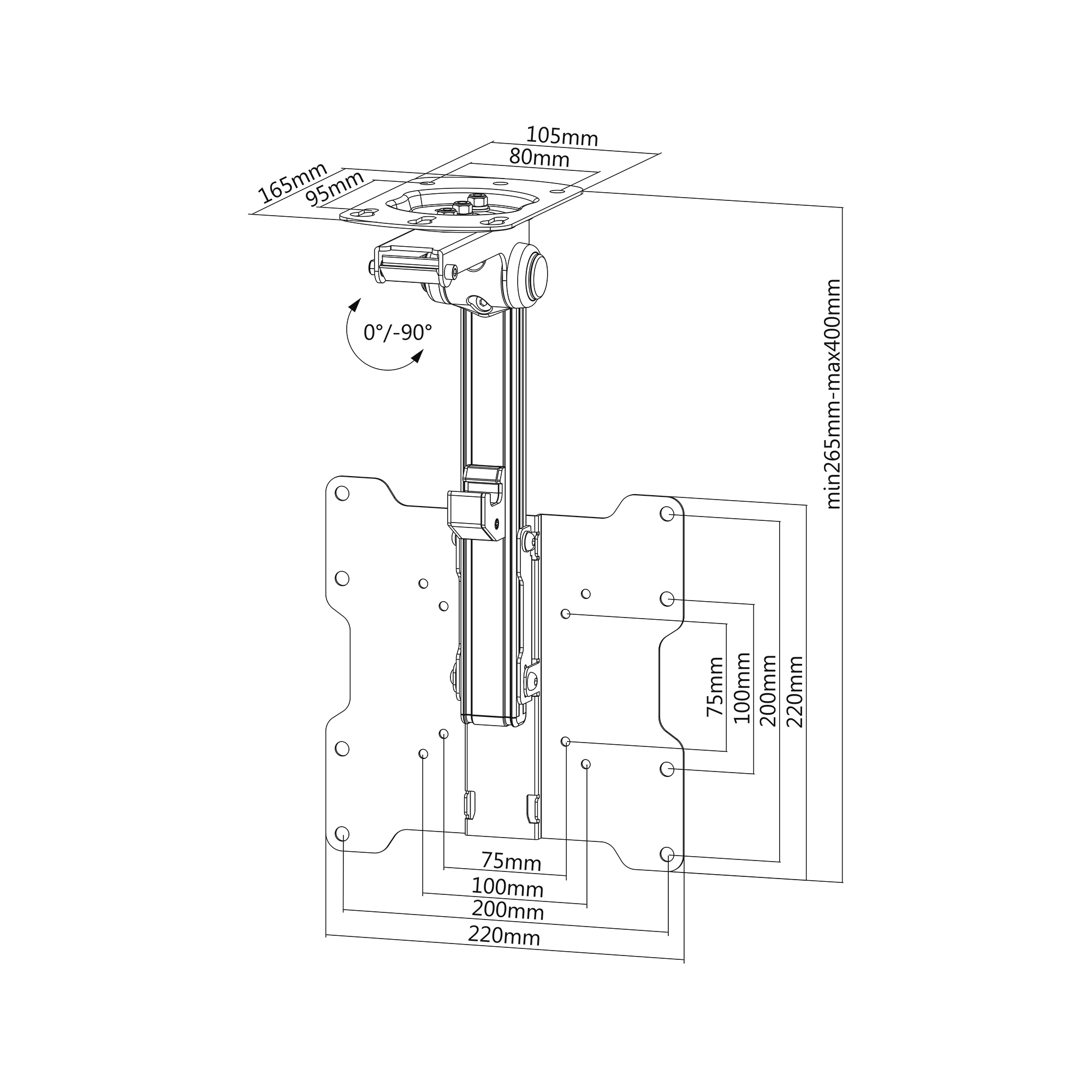 Naudojimas: LCD televizoriai Montavimas: LCD / LCD rankenos tipo: Grįžtamas Ekrano dydis: 17 "- 37" Maks. apkrova: 20 kg Vertikalus reguliavimas: 0 ° -90 ° Horizontalus reguliavimas: + 45 ° ~ -45 ° Standartinis VESA: 75x75, 100x100, 200x100, 200x200 Aukščio reguliavimas: 265 ~ 400 mm Atstumas nuo sienos: 85 mm Horizontalus: Nr kabelis valdymas: nėra tinkamas lenktiems skydams: yra apsaugos nuo vagystės užraktas: Nr Medžiaga: Plienas Paviršiaus apdaila: Miltelinis dažytas Spalva: Juodas Įtraukti į rinkinį: tvirtinimo varžtai Matmenys: 220 x 171 x 399 mm