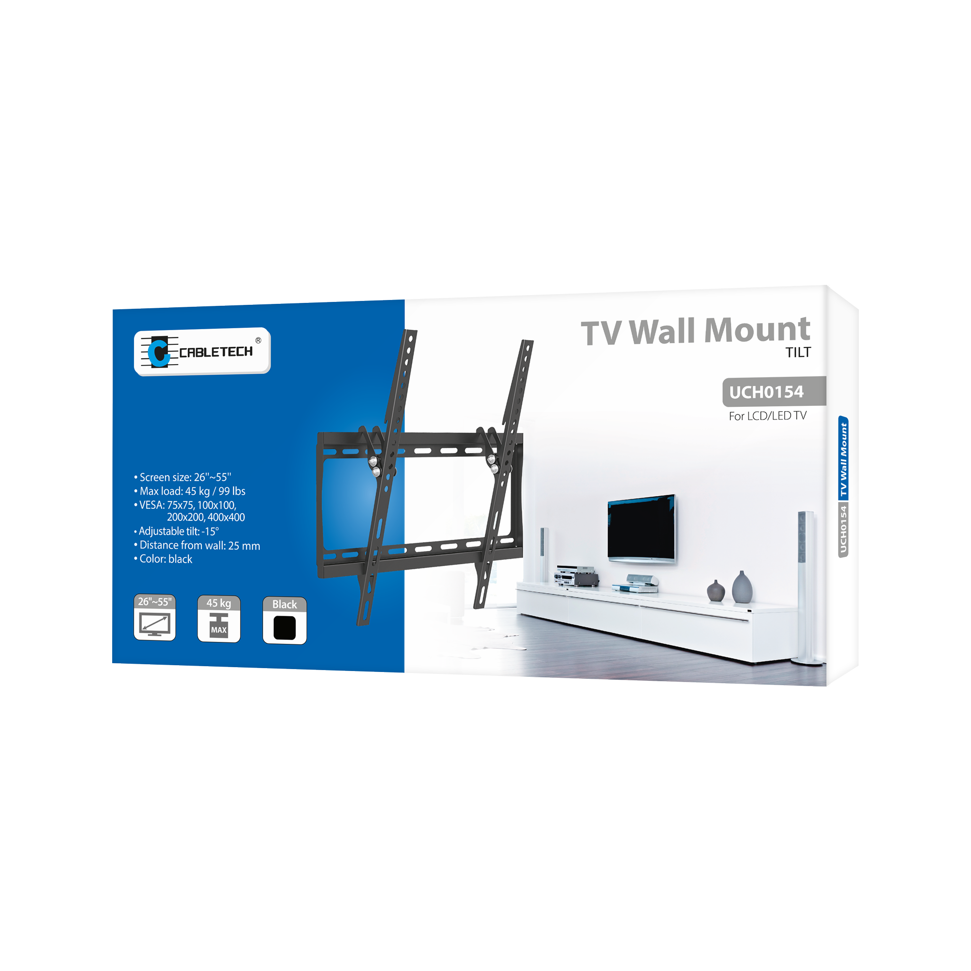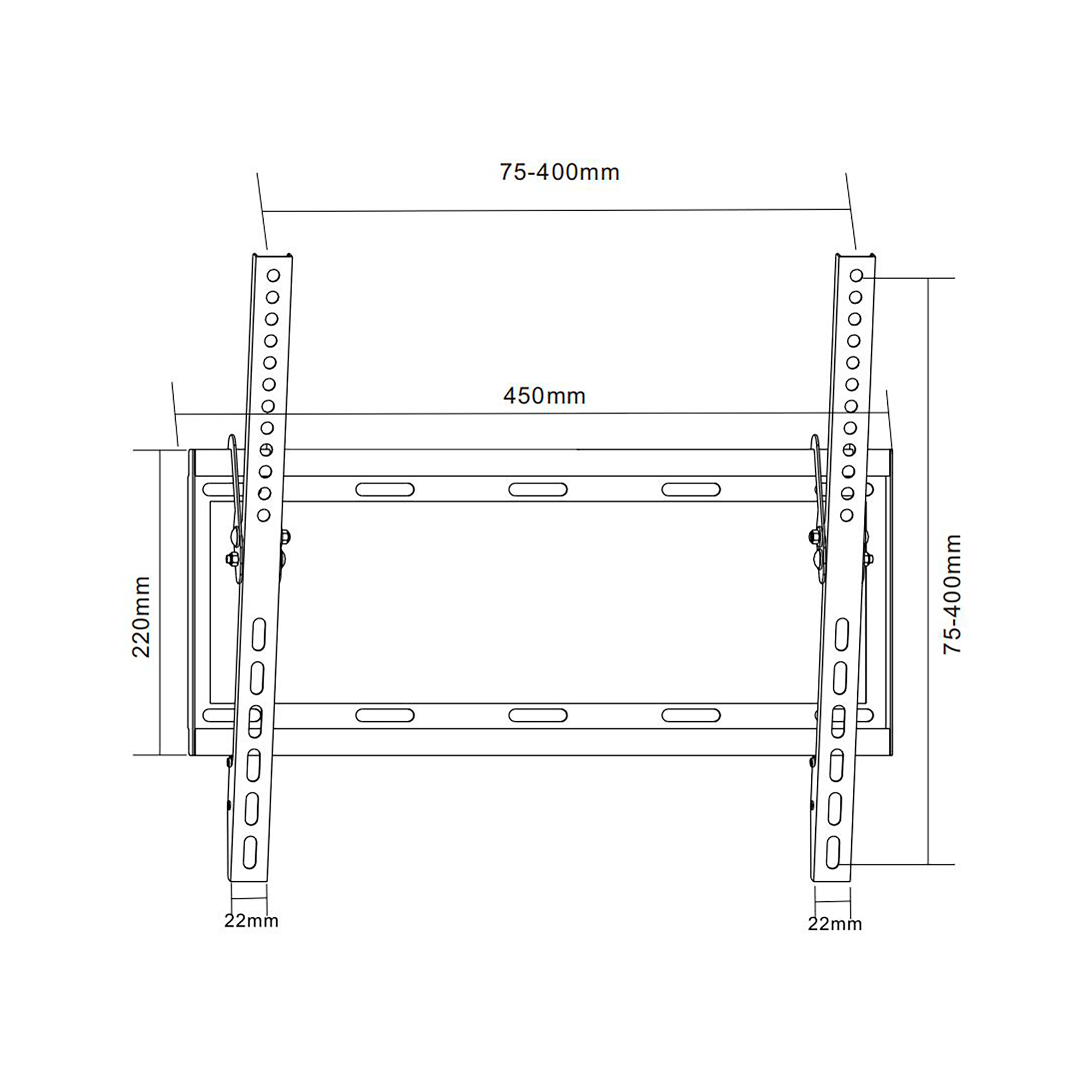 Naudojimas: LED televizoriai Montavimas: Siena: Ekrano dydis: 26 "- 55" Maks. apkrova: 45 kg VESA Standartas: 75x75, 100x100, 200x200, 400x400 Vertikalus reguliavimas: -15 ° ~ + ° atstumas nuo sienos: 25 mm Horizontalus: Izoliuotas kabelis valdymas: ne tinka lenkti ekranai: Nr Antivažing spyna: Nr Medžiaga: Plieno paviršiaus apdaila: Miltelių dažyta spalva: Juoda Įtraukti į rinkinį: Montavimo varžtai