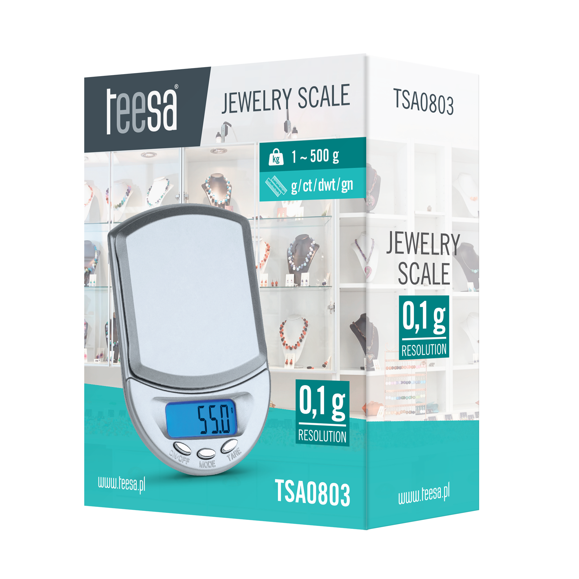 Maksimali apkrova: 500 g Mažiausia apkrova: 1 g Tikslumas: 0,1 g Vienetai: g, ct, dwt, gn Funkcijos mygtukai: režimas, tarA, maitinimo LCD ekranas: taip Maitinimas: 2x AAA Darbinė temperatūra: 0-40 ° C Laikymo temperatūra: -10 -60 ° C Išmatavimai: 7 x 10 x 2 cm (9 x 11 x 4 cm su pakavimu) Svoris: 73,1 g (103,6 g su pakavimu)