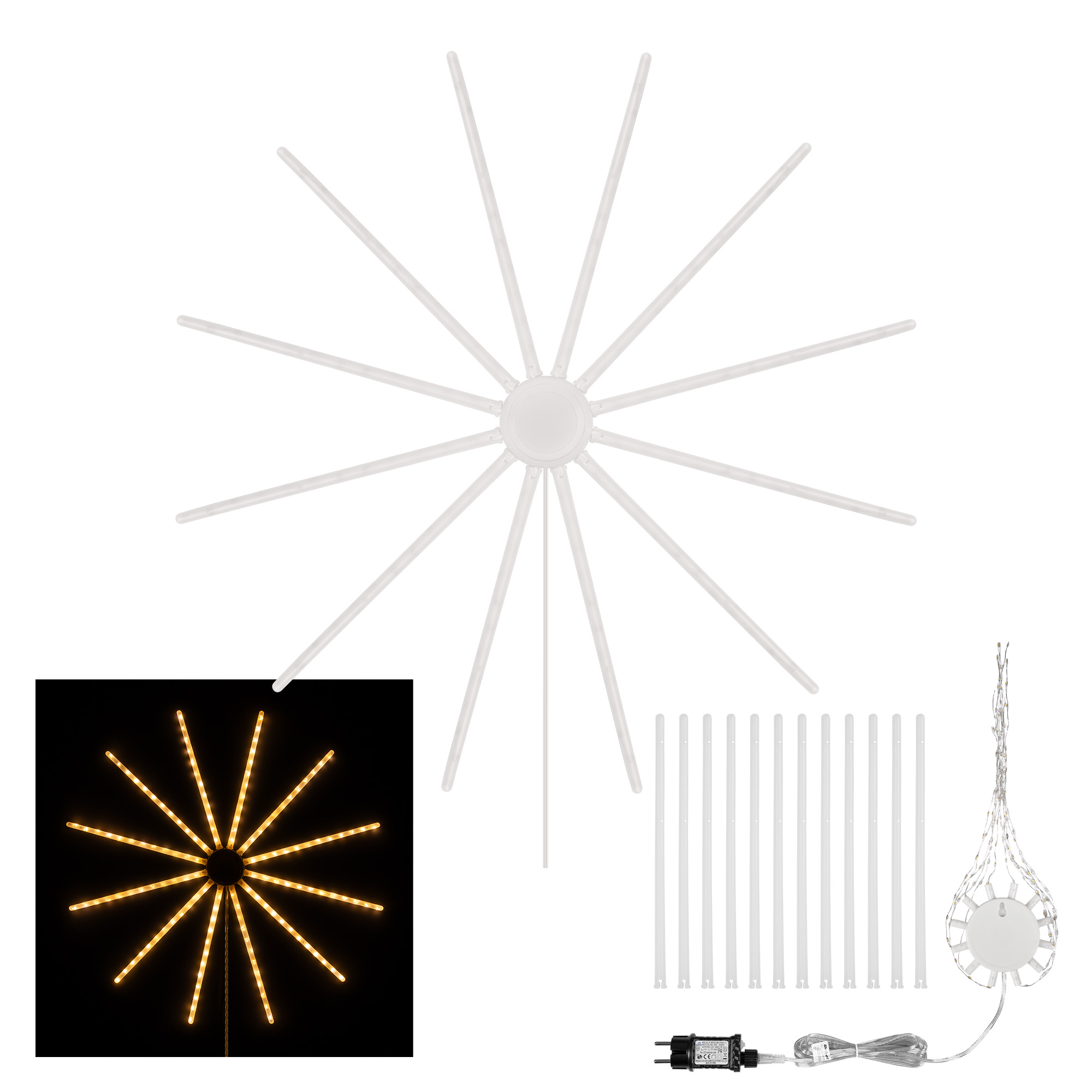 Lengva uždanga - žvaigždės, šilta balta, 230V