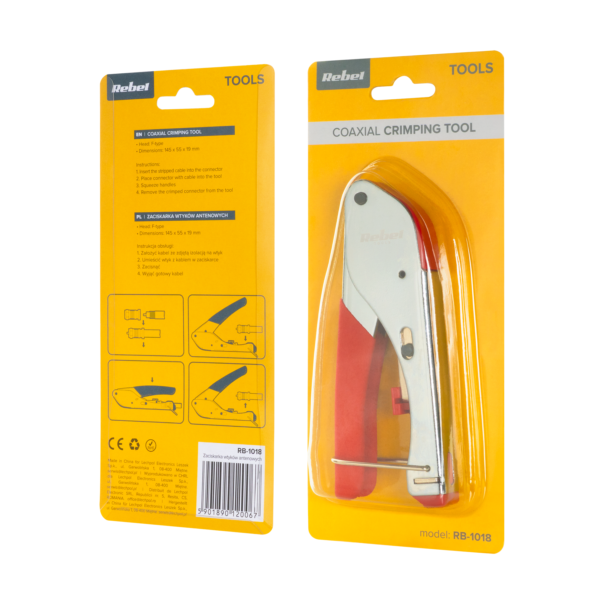 Jungties tipas: F- tipo kompresoriai Suderinami kabeliai: RG59, RG6 Medžiaga: Plienas + medžiagos Ergonomiška rankena